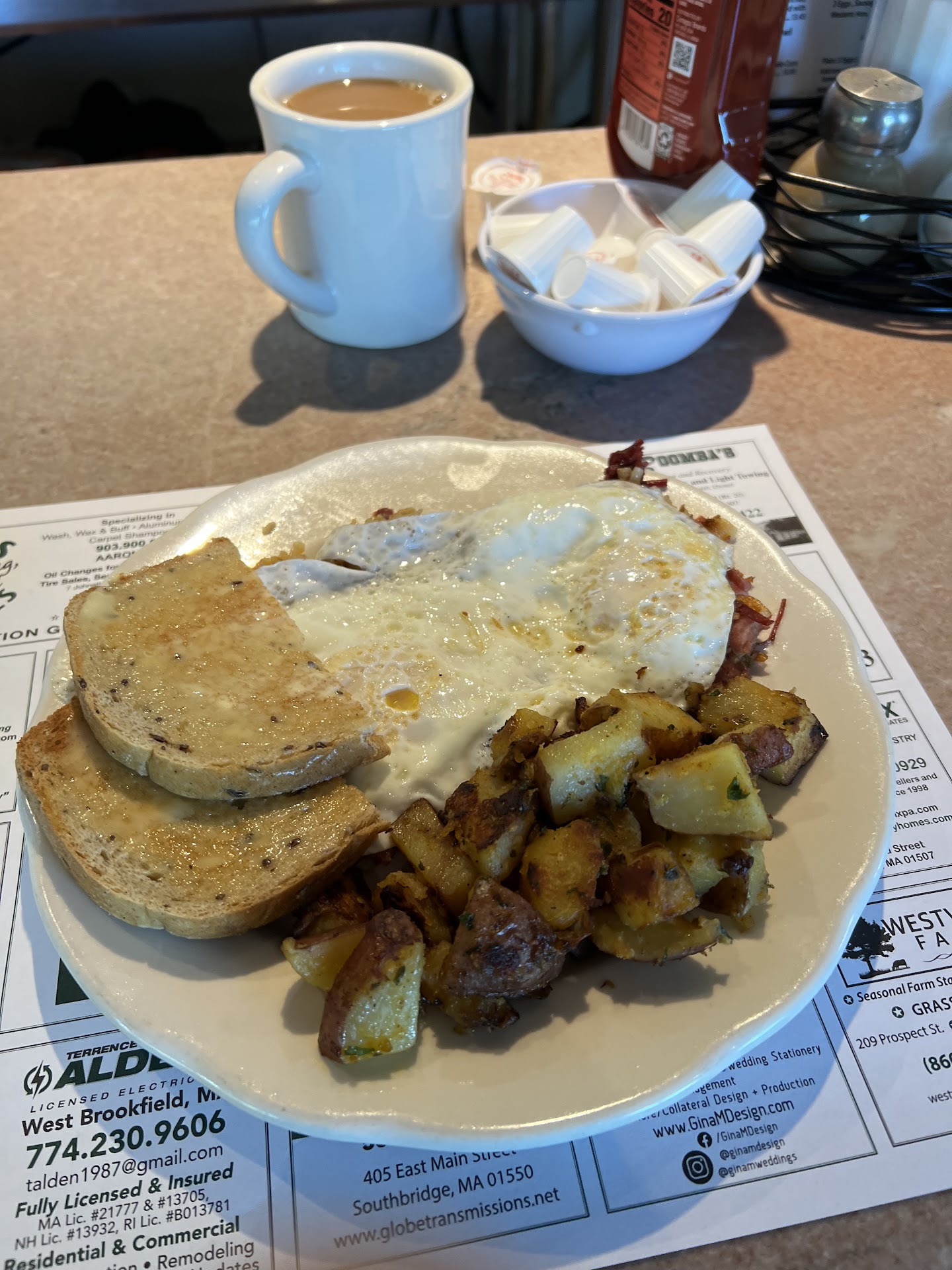 We ended up here because the other place down the road (won’t say the name as it’s not about that place) was packed and did not want to wait 45 minutes to sit. Much like Carousel Diner in NH , this place is fantastic in terms of food. We got 3 different meals and all 3 were amazing (I highly recommend getting the meat lovers wrap). The price is fair; but I have some issues with the place. First the booths are very small, I mean I could not enjoy my delicious meal as I was hitting elbows with my wife the whole time. I’m sure a party of one or two this would be okay, but anymore than 2 it is uncomfortable. Our server was a very nice young lady but when I asked if they had sweet tea and she said yes, I expected sweet tea not some raspberry brisk tea. After finishing my tea, I had asked for a refill and placed my glass at the end of the table; she walked by 4 times, got refills for the older couple next to us but ignored mine. I never got a refill so even though I enjoyed my food, I bet it would of tasted even better if I had something to wash it down with. Next there is not much atmosphere, they have a TV on with no volume, you can hear literally everyone’s conversation & to me that’s kind of eh. Lastly aside from all that, this is an issue of mine personally & should not be used when determining coming here unless you have the same problem as me. I suffer from Crohn’s disease & when I have to go, I have to go. They have one bathroom, which isn’t terrible except when there is a line of people waiting. I had to wait 15 minutes for the waitress (the same one who was our server) to get out the bathroom for me to use it. As soon as I got into the bathroom I already had someone knocking needing to go as well. Like I said it’s not a big deal but should be made aware of this if you suffer from any bowel disease.