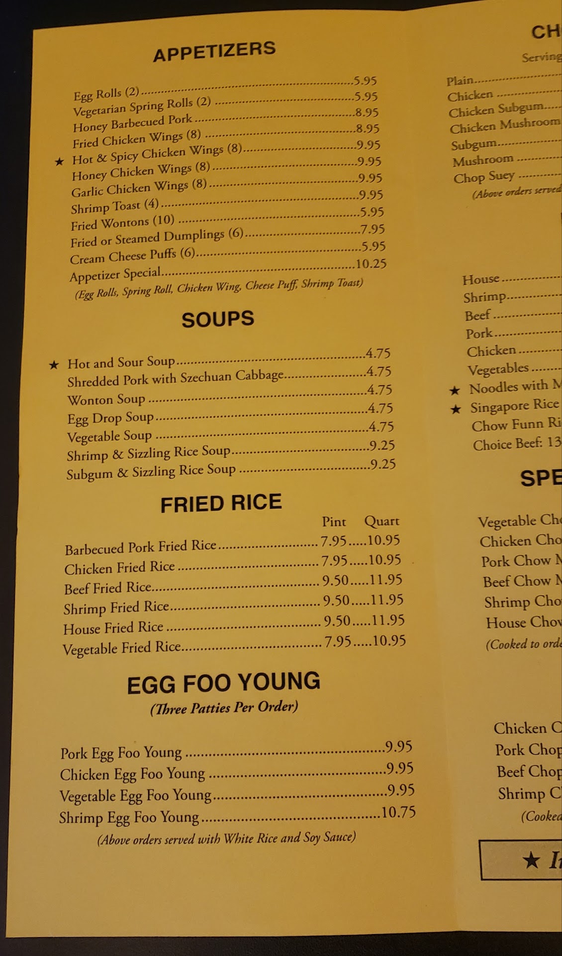 Read moreI'm honestly really disappointed this place has remained take out only since covid. The only reason I can think for them to do so is that they make more money this way. They also removed their lunch special, have raised their prices, and quality is decreasing. I got the chicken chow mein with fried rice and sweet and sour pork. The pork was hard to chew, though the bater and sauce were good. The chow mein though was really disappointing. The sauce was basically water and the chicken was tasteless. The fried rice was simply boring, unfortunately.