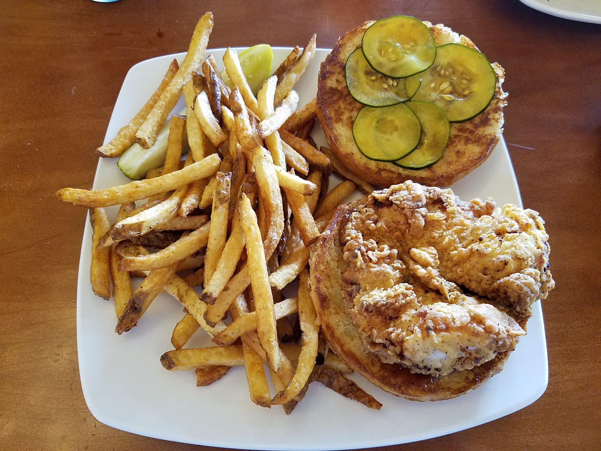 Read moreDecided to try out Oak 19 as used to eat at the clubhouse by my old office occasionally. Walked in and was promptly greeted and told can sit anywhere. We picked a seat near the windows and waitress brought menus for us. She was back in a minute or so and took our drink order. Few minutes later brought our drinks, they have root beer on tap so had to have it 😁 Ordered was Fried chicken sandwhich with fries, Black and blue burger with slaw, and kids chicken tenders with apple sauce. The fried Chicken in the sandwhich was hand prepared and breaded (nice light breading) and had a bbq sauce on it, nice simple sandwhich on a toasted bun. Fries were hand cut and not over cooked with simple salt and pepper seasoning. The Black and Blue burger was cooked perfectly with a surprise of Dijon mustard which nicely complimented the blue cheese. Fortunately my wife split it and gave me half up front as if I would have asked during the meal I wouldn't have been able to try it. Slaw was a little sweet for her taste but was nice and creamy, that said she finished it all, putting some of it on some fries. The kids chicken tenders were prepared same as the fried chicken and was all white meat.