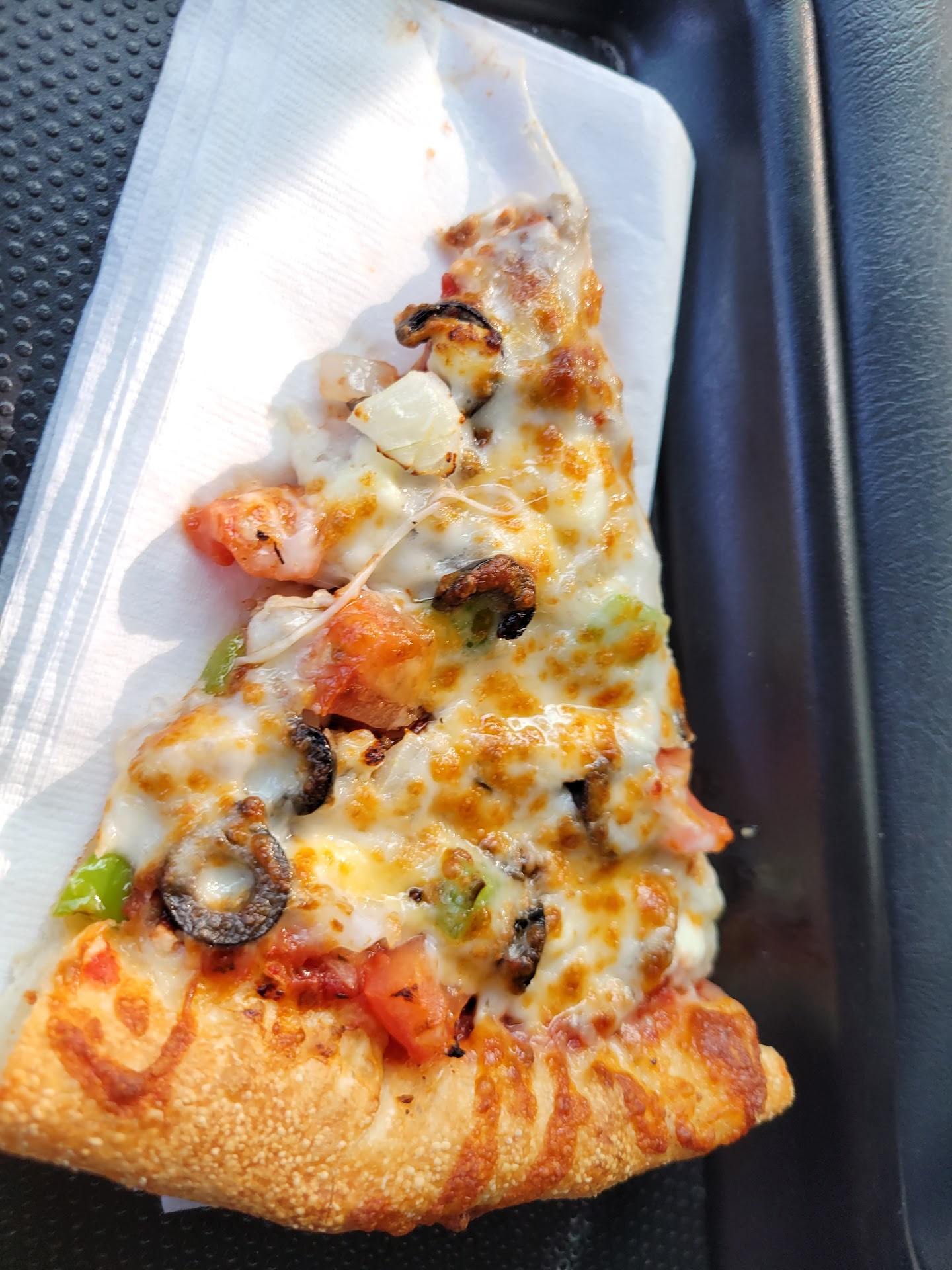-the guy who helped me was an awesome older gentlemen, very respectful and had great rapport with me and another customer picking up their order -yet again they hooked me up with a coupon he suggested the cheesy bread, and, it's not disappointing! food was hot and ready in a very timely manner, even though my order was one of many THE OLD GUY HOPPED ON MY LONG BOARD!!! and actually held up, which was impressive. i am very satified.