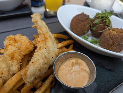 Read moreI really really wanted to have a good first experience! But not this past Monday night. We were there at 5:30ish and it wasn't packed. We were seated outside. It is beautiful! Our waitress was super friendly and energetic and very on the ball. So far a good start! We ordered a couple of beers and they came right away. Great! Ordered the cornbread...it came quick enough in a nice hot cast iron pan. But it was cold in the center. Our waitress ordered a new one quickly and the manager apologized. The new one came and, while it was not ice cold, it wasn't as warm as it should have been. Husband ordered the Jerk Chicken sandwich with fries. I ordered the Brisket dinner with fries. The chicken sandwich was good, but not as hot as he was hoping. The chicken was dry. My brisket was very tasty, but fatty and one piece was dry. The 2nd set of beers we ordered tasted like dishwashing liquid. We called over our waitress and she took them from us and removed them from our bill which is great, but didn't offer us new ones in different glasses. So, the potential is there as there are so many reviews that say so. We will await a bit before we give...