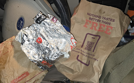 Whats with the picture of an Arby's bag and the two wrappers from Arby's sandwiches purchased at the Arby's on Route 4 in Chatham, IL??