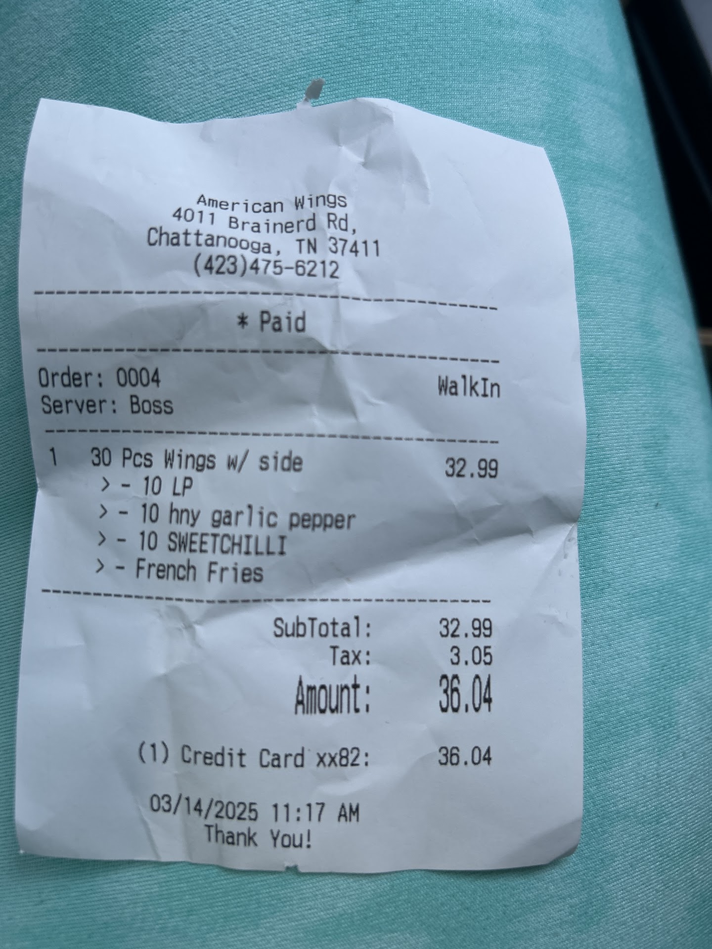 Read moreWhen I was ten, my mother took me to Buffalo Wild Wings for the first time to catch up with an old family friend. Little did I know that I was about to be introduced to my new old friend: buffalo wings. Sadly, my younger years were limited to a mediocre wing at the aforementioned establishment and saw little variety. What I did know: I loved wings; what I didn't know: the best was yet to come. My first visit to American Wings came shortly after going through a serious breakup. I was looking for advice and good spirits with which to surround myself. So a good friend and I made our way to American Wings to discuss life and enjoy each others presence. I found that what I needed that day wasn’t just a good time and good discussion. What I truly needed were the perfectly cooked and appropriately sauced wings that were American Wings. American Wings showcases a combo meal (10 pc. Wing and fries) for just $7.99. Add a drink and your still under $10 at $9.50. This wonderful price along with incredible wings is a perfect formula for the best wings in town. As a kid, I was always told that the sky's the limit. This, on a physical level, is not true. However, it is absolutely achievable on a spiritual level. Going to Buffalo Wild Wings for the first time gave me my wings. Going to American Wings taught me how to fly. American Wings continues to be the best wing in town and the best value for your money. I have shared many laughs, tears, and life over a styrofoam box of wings from this wonderful shop and plan to continue to do so in the...