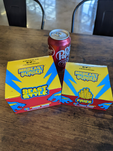 We sat down & pretty much didn't seen anything else. Not a single person behing the counter. Not a single other patron. The only sign of Mr beast was a free QR code papers on each table to. We wanted to order food but were afraid it not being received by anyone to prepare our food. GF went to use the restroom and noticed a church service going on in the back. It made us feel a little odd so we left.