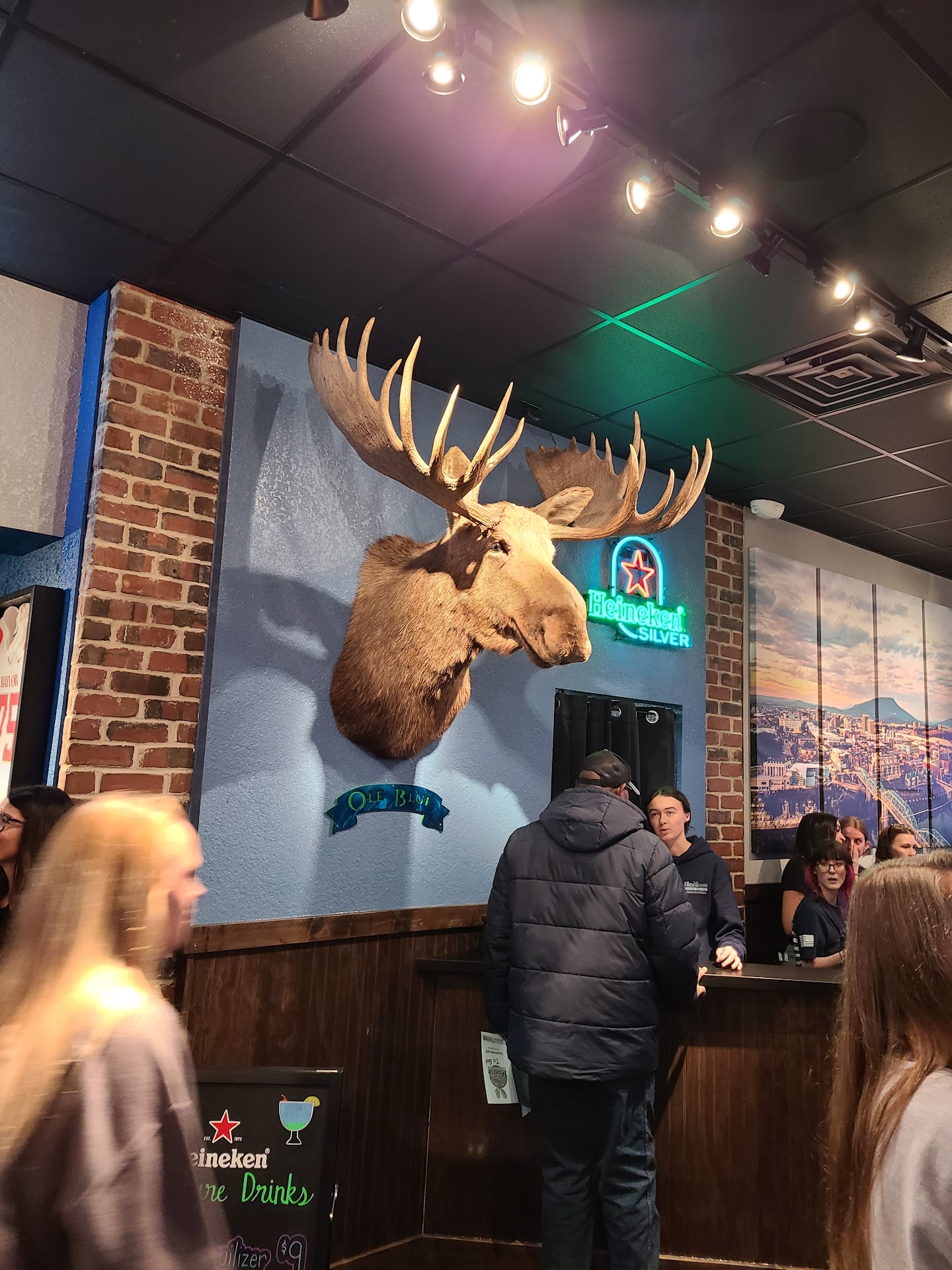 Saturday lunch not too busy. We were greeted at the door and whisked away to a table. The waitress immediately brought a basket of silverware and napkins. TVs everywhere but not turned up. Music was plenty loud. I feel like a Friday or Saturday night could be a bit overwhelming or hard to hold a conversation.