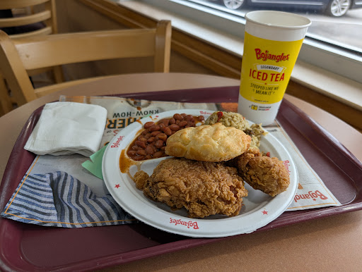 Read moreI live on the west coast and I've been eating Bojangles since I was a child growing up in Charlotte, North Carolina. And even though they don't have Bojangles in the Pacific Northwest over the past few years, a lot of my family members have been complaining about the quality of the food and the service at Bojangles. And that's a shame I find because it's actually one of the first places I go eat when I come to the South. When I entered the Bojangles there was no one up front. They were all in the back doing something so there was not a soul in sight until this one lady who was on break called everybody up and said hey... There's a customer out here. After that a young lady who appeared to be the manager came out to take my order and then she was fixing my food while she was actually on her personal cell phone unless Bojangles gives out cell phones. The chicken was good but I did notice that the leg was colder like warm and the thigh was hot so it must have just came off the grill. Not too long before I got there. The Cajun pintos were excellent. The bread was good but the dirty rice felt kind of mushy so I did not finish it. Inside the restaurant was actually super clean so I give props for that. But I did go use the bathroom on the way out cuz I want to wash my hands since I had chicken stuff on them and there was no soap in the men's bathroom. I worked at Kentucky fried Chicken growing up when I was in high school and customer service is very important and the appearance of cleanliness to the customers is very important so I hope Bojangles gets...