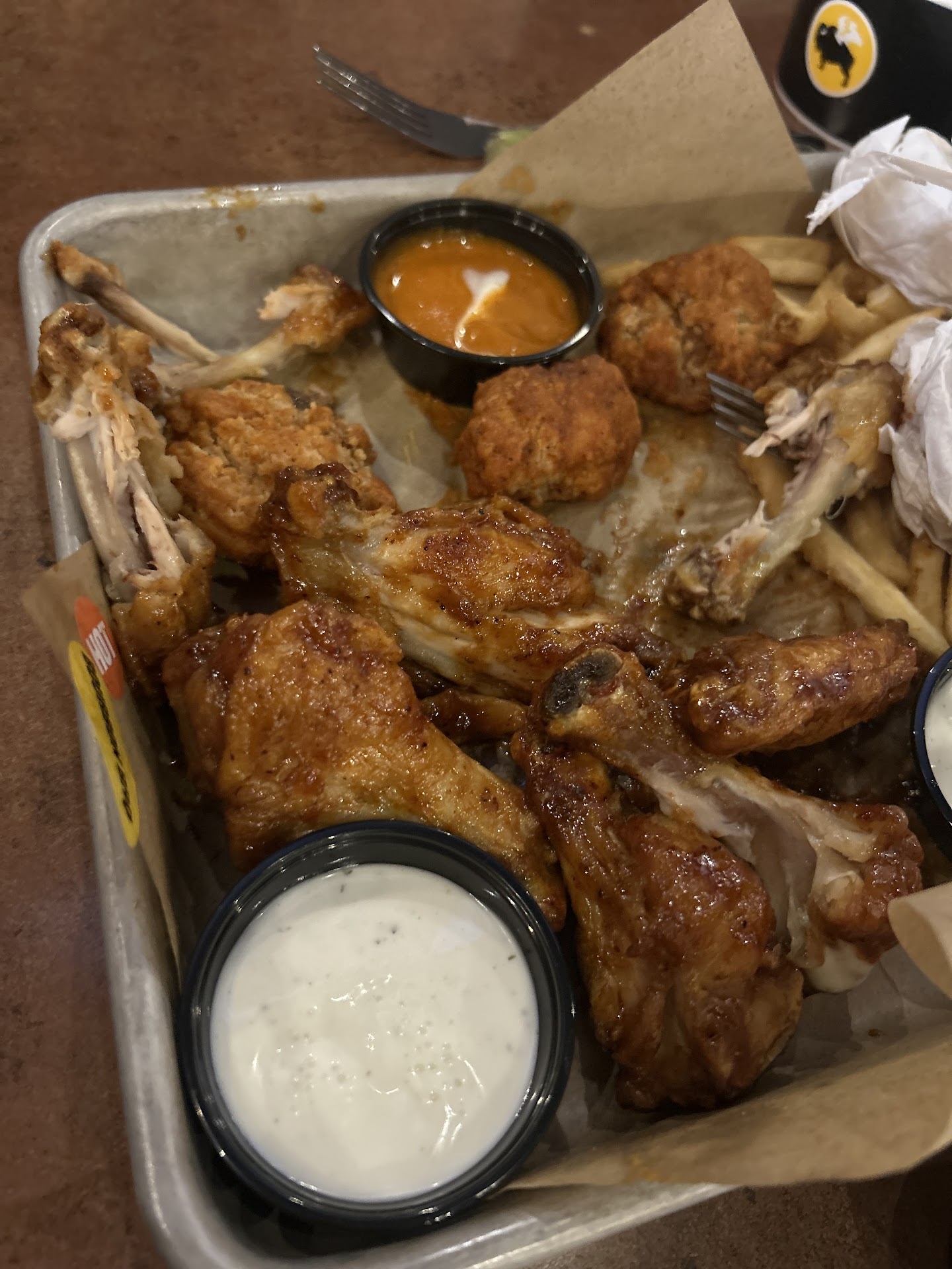 Ā Ā Ā Read moreWell, let's start with the service. 2 adults and 2 children. I stood at the front door, waiting, but nothing. I was the only one waiting for a table. We went in the rest room to wash our hands. When we came out, still, no one at the podium. A girl was at the takeout area, on her phone. She finally came over and asked if we were helped yet. REALLY? a table for 4 please. She looked around like the place was jam packed. I asked for a booth. She said, "hold on", and left. There were about 8 booths available. She started clearing off a table and never returned. What is wrong with people. We finally got someone else to seat us. The waitress was nice and by now,I had 2 cranky kids. She took our order for the kids first and placed their orders. The kids meal came out quickly, yay. We ordered the Nashville chicken sangawich and a cheese burger. Onion rings for me and Mac and cheese for my adult son. My chicken and rings were good. The Mac and cheese was totally disappointing. The kids were OK with their meals. Look, for$80, I expect just a little better service and food. I didn't enjoy the last time I came to BWW. That was 4 years ago. I guess it will be another 4 years before I ever try them out again. If they are still in business. Note: if you choose to be in the people serving business, just like you, people are working hard to support their family's. Given the many choices of places to eat, You can get a great meal and great service at other places for this much money. Guess what my choice will be for the next time. I'm not trying to be mean. I'm trying to help management do a better job. They are failing...