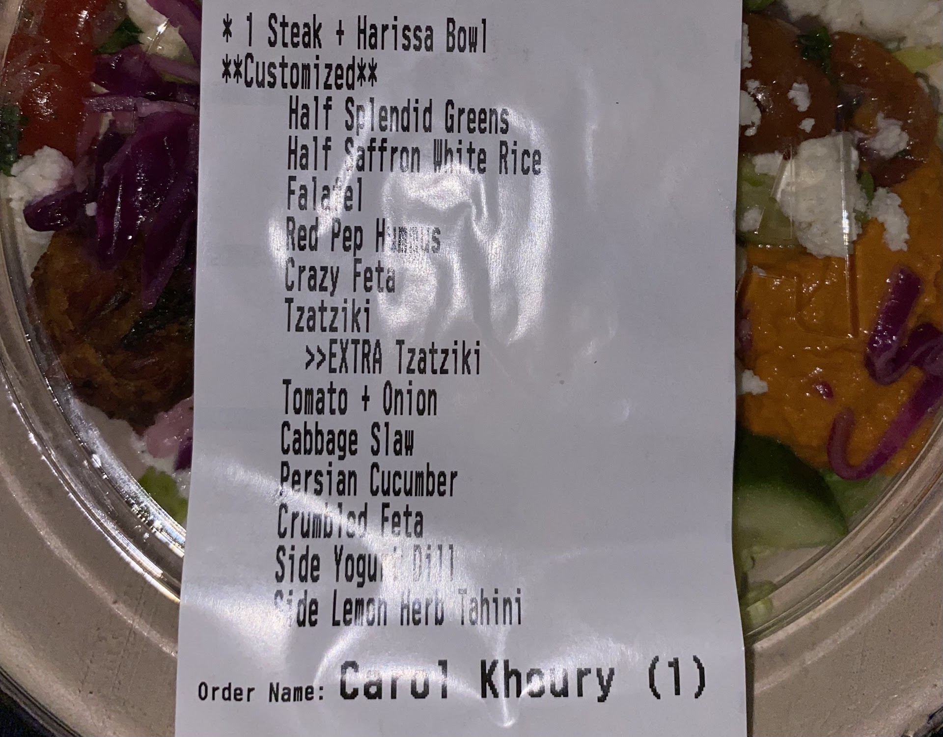 (Oh my! This place is sooo good. Everyone says itās good, but donāt underestimate it, it really was so amazing! Everything was so fresh and tasted like it was straight from your momās garden. In love with it. Would definitely recommend again & again. The fact it is right by 4 gyms and would be a great healthy option afterwards rocks my sox! I got the pineapple/mint/apple juice which Iām stoked they have natural options for drinks cause you could taste the slight fruit pulp in it. The bowl I got was amazing called the steak harissa with falafel and extra sauce. ššš)