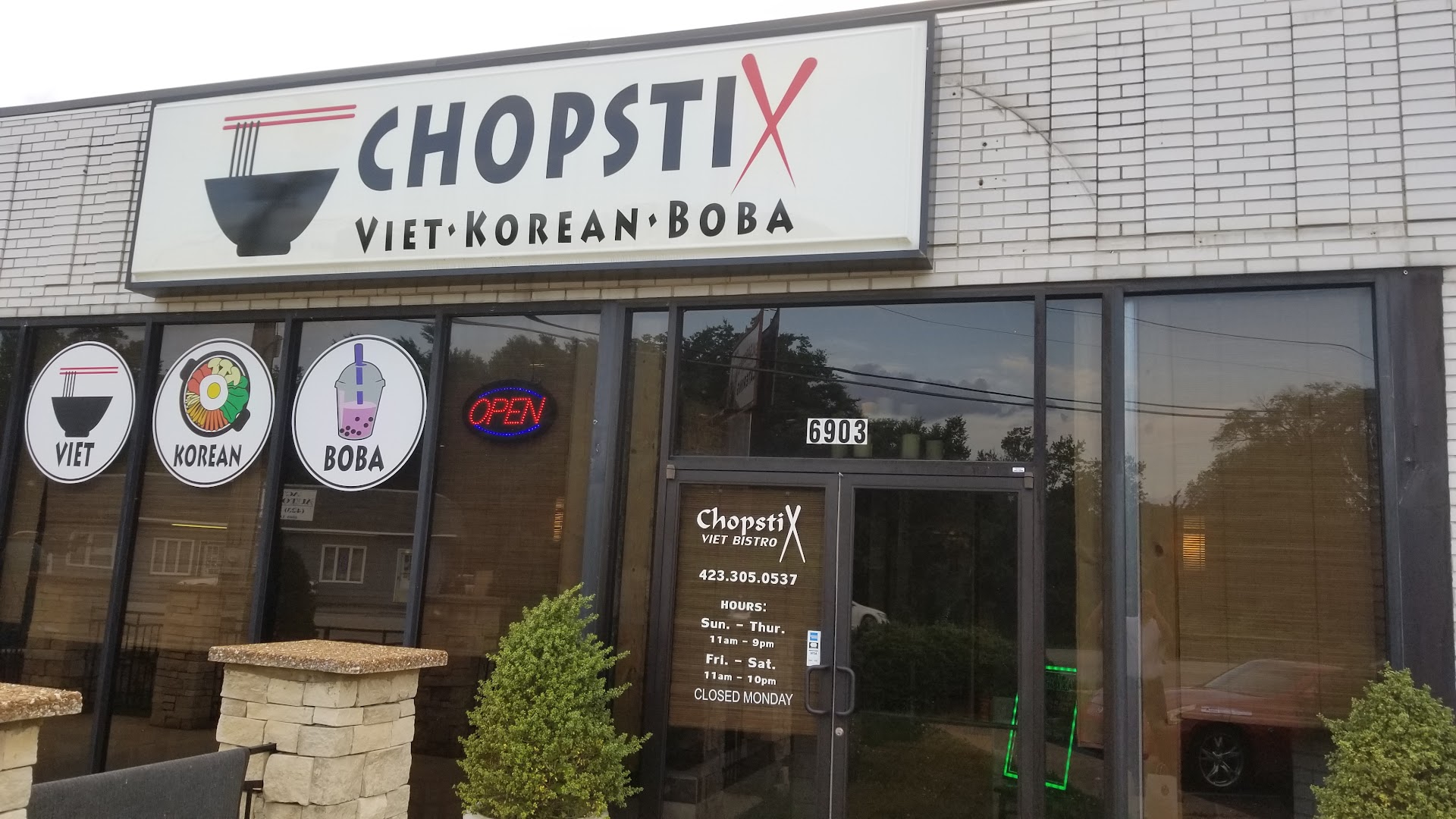 My husband, 2 children, and I dined here tonight, Saturday, July 22, 2023. We saw this restaurant on our last visit to Chattanooga, picked up quick boba for our kids and received speedy, friendly service, and decided we would come back to try out the food.