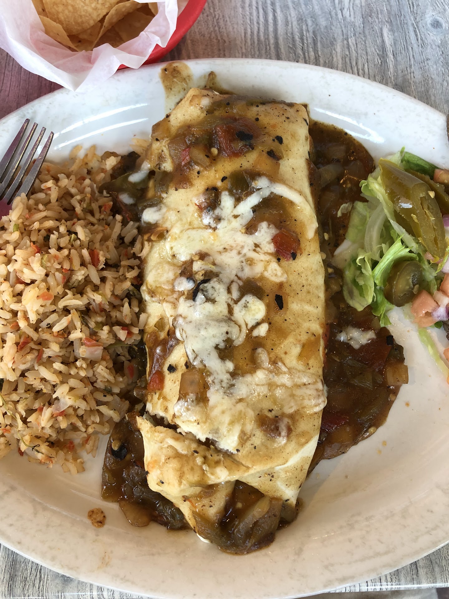 We both got the "ChuyChanga" as our entrees. It was the most evenly fried, crunchy chimichanga I've ever had, and the chicken and vegetables in the filling were so delicious. With most entrees you have your choice of any of the signature sauces. They range from the not at all spicy tomatillo sauce up to the fairly spicy green hatch chili sauce. I chose the "Boom Boom" sauce. I don't recall what's in it but it was cheesy and spicy and excellent. My wife isn't much for spicy food so she opted for the rancho sauce, which she really enjoyed. I got the green chili rice while she went with the traditional Mexican rice. We both went with the churro beans rather than refried beans. It's more like a bean soup with the usual green chilies. We both loved them though it was a little spicy for my wife.