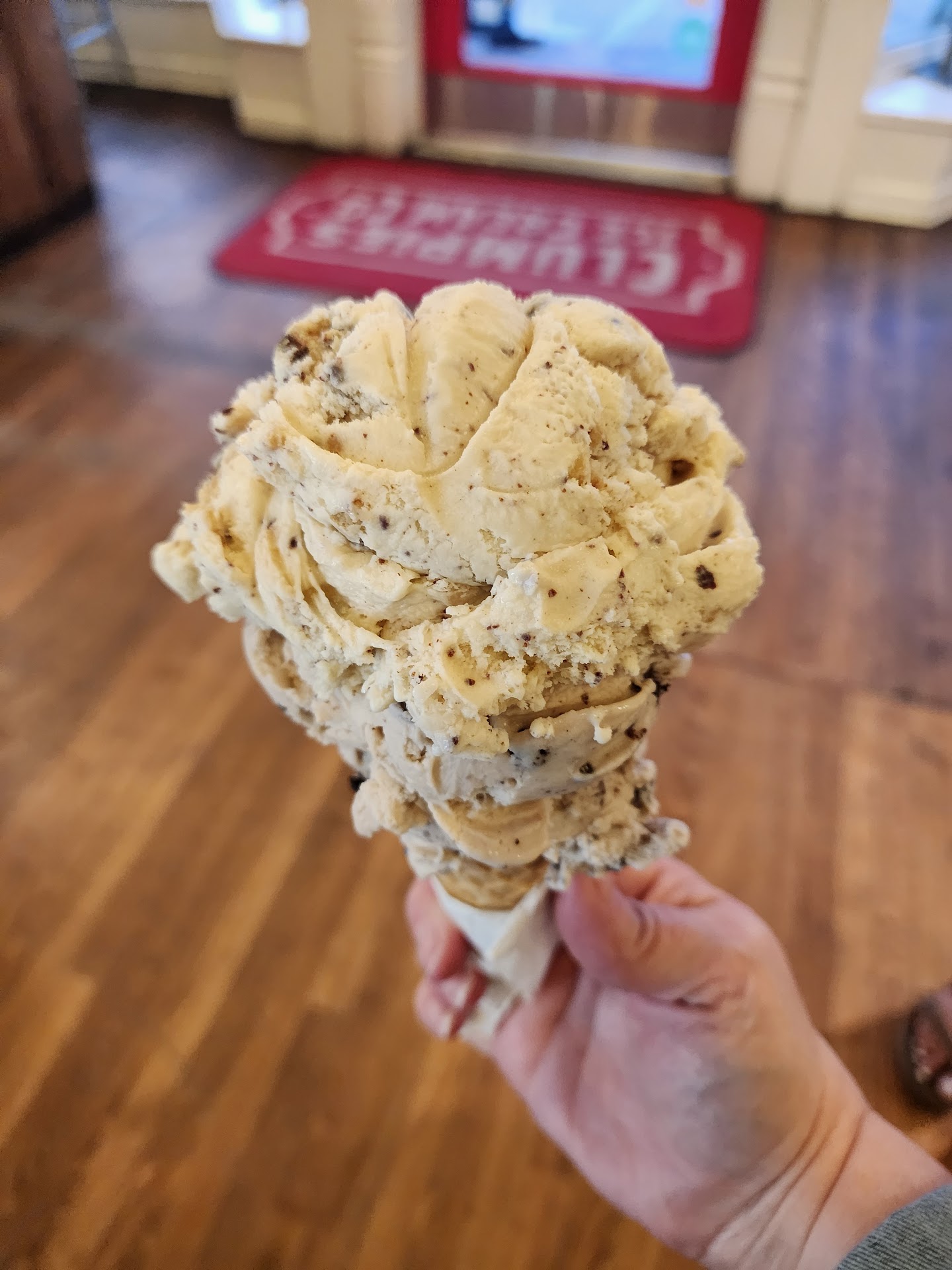 There was a line. But it moved pretty quickly. They had lots of staff on hand for a scooping. And by the way we needed the two or three minutes in line to decide what we wanted. And by the way this was a hot busy Saturday night. So I imagine we were at peak rush hour.
