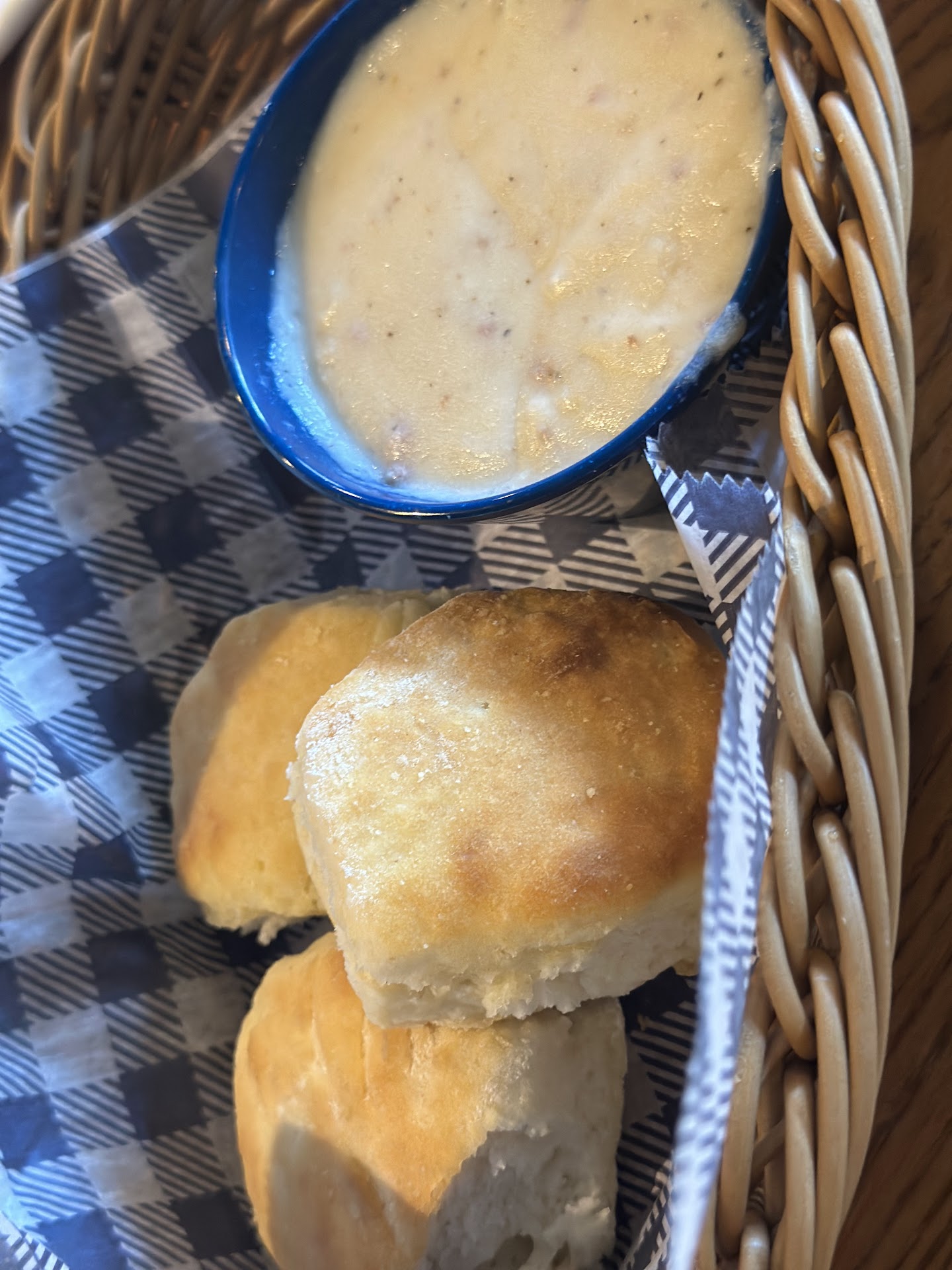 Went to Cracker Barrel tonight a place to go order it’s Friday night not very busy. I went to the front after walking through the Store there were two young ladies and a young guy behind the register young ladies walking to the store as miserable as they could be one of them after I made eye contact did smile back no words were spoken. They were just aimlessly walking around in circles with a young man at the front, who after I asked to please say to go order called somebody on his microphone. The young lady that came up had her order book out and ready to take my order. I still haven’t seen a menu so she said how annoying and got me a menu. She took my order right then in there I ordered a catfish with a couple of sides. She asked for a name for the order so I assumed she would bring it up when it was ready well after hanging around for 45 more minutes, including the waitress stand, nobody asked me there was anything they could help with including the manager who passed by about 45 minutes I asked the young man if you could check on my to go order and he said oh it’s right here. Sorry I didn’t see you again after me lurking around for close to an hour when I checked the bag I noticed that the biscuits were cold after I purchased my items. I asked him if he could kindly Request some hot biscuits and some jelly for my biscuits. Let me find out need to say 10 more minutes I still do not have replacement biscuits nor the jelly so I just picked the ones up on the counter that I have put their previously and told him to cancel it. Thank you very much. I am staying at the hotel next-door by the time I got back to my room. I sit here with ice, cold, catfish, and vegetables. Extremely unhappy!!!! which is possibly why on a Friday night Cracker Barrel is not very busy at all! I’m sure the manager who I highly doubt even reads the reviews. I know this job might be a paycheck to you, but you have a lot of young people who are working under your management and you are failing them along ...