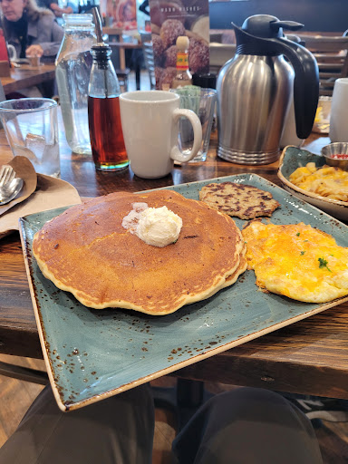 1st visit, Had lots of wait staff, some standing around so good service and food came quickly. Modern décor with high ceiling, a couple of hand painted murals on the wall (sense of Chattanooga). So great for visitors to the city. Coffee came in a carafe (plenty hot ) but nothing special taste wise and it had been sitting around for a while under a warmer, so slightly burnt taste. Considered sending it back.
