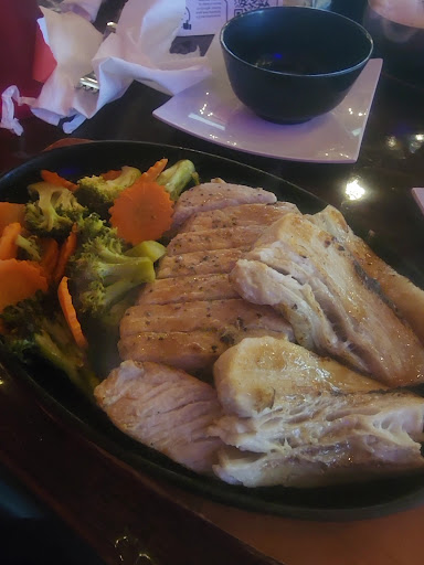 Read moreWanted to love this place but unfortunately it didn’t happen. My family and I were looking for a new hibachi place to love- which we would have gladly visited pretty regularly. I ordered the Chicken Hibachi with Grilled noodles and fried rice with a spice level of 3. Upon getting everything Togo, as soon as we entered the restaurant the waitress greets us with “for here or Togo!?” We were like “oh hello.. We actually ordered online but were wanting to get some boba tea while we wait on the order to finish.” She says “oh” and walks off and goes into the kitchen. Clearly has a pretty great attitude about her job. So we wait for a bit. She never comes back to ask us our boba tea order until she brings the food. Then asks if we’d like to order boba. Nope definitely not after her attitude. We get our Togo food. Open the boxes in the car and everything could have been thrown in there in more of a hurry. The grilled noodles were covered in sauce, and really had no flavor at all. My rice really was delicious. The chicken was covered in the same black sauce and was not very impressive/ almost like it & the noodles were old. The rice on the other box tasted as if it wasn’t cooked completely and the shrimp wasn’t deviened. The Japanese fried chicken we had was ok but really just tasted like the oil it was fried in. The ginger sauce to the salad was great as well as the veggies that came with the hibachi meals. I also found a piece of metal grate in my vegetables which I’m sure was an accident but definitely added to the disappointment of our...