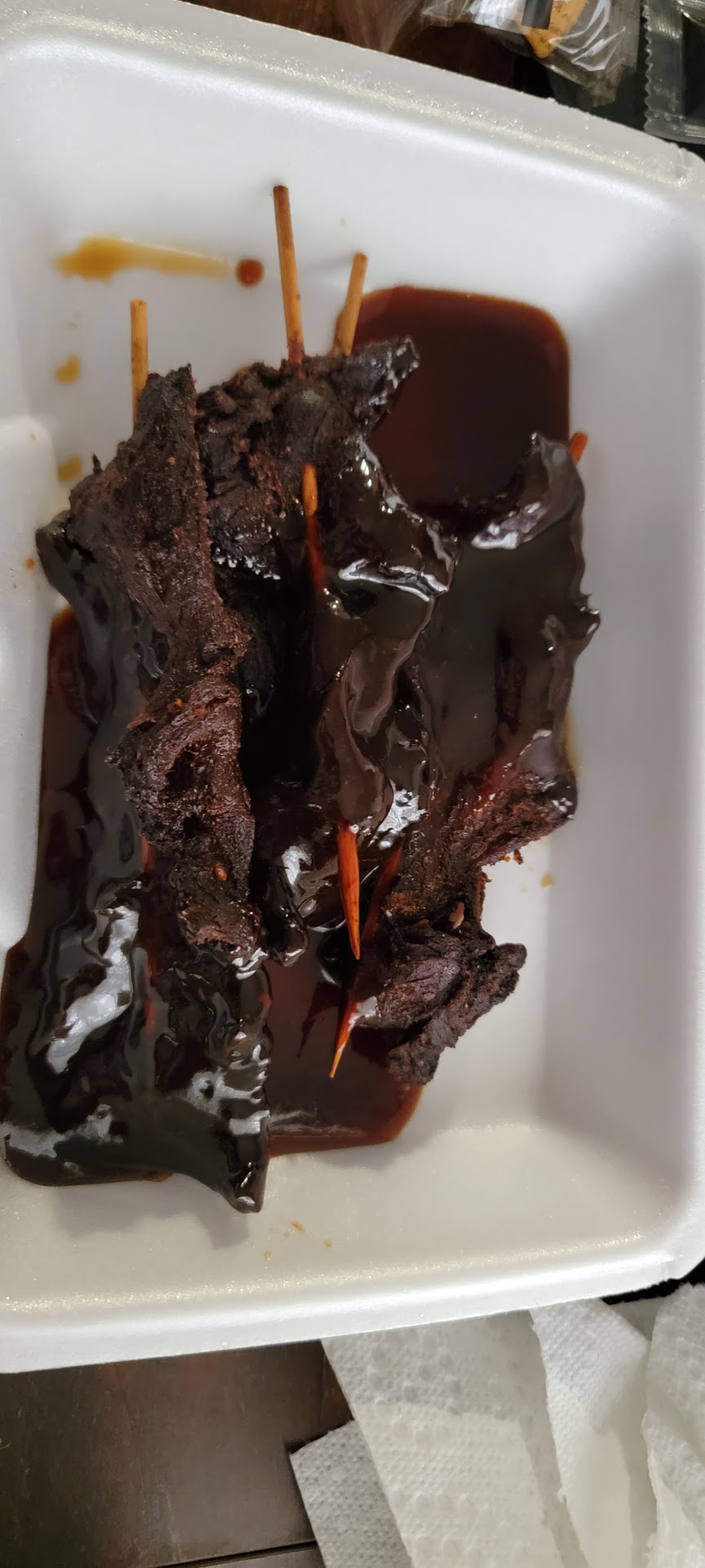 My boyfriend also got the pupu platter, and the portions in it were huge. The egg rolls were full sized and crisp- not soggy. The chicken wings were full sized wings rather than little wings you'd order at a sport bar. My boyfriend loved the skewers of beef the most.