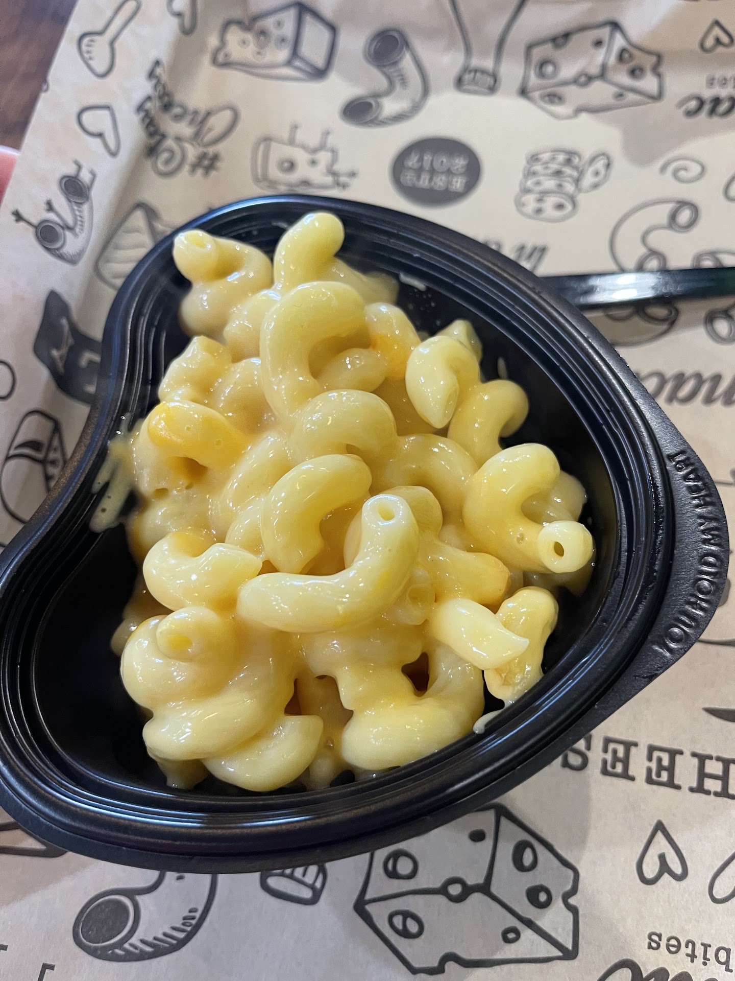 The Process. We waited in line for a solid 20 minutes, meanwhile there was only 5 people in front of us. This is probably because the line forces you to hide behind a wall where you can't see the menu, then your forced to look over one hundred options before you inevitably decide you want mac and cheese at the mac and cheese place. The assembly line is a mess. All of the stations are in the wrong order which left me confused and wanting to go back and forth to build my bowl. It should go as follows: Noods, Cheese sauce, veggies, protein, SHREDDED cheeses, extras (sauces, bread crumbs, etc). After your food is assembled it is thrown into their rinky dink oven, then two whole people are responsible for destroying your beautifully crafted bowl by dumping it into a secondary, useless, heart shaped bowl (biggest waste of money and plastics ever). All is all the process took us about 30 minutes just to get our food to go, and could be incredibly more efficient if the people who designed the restaurant had half a brain.
