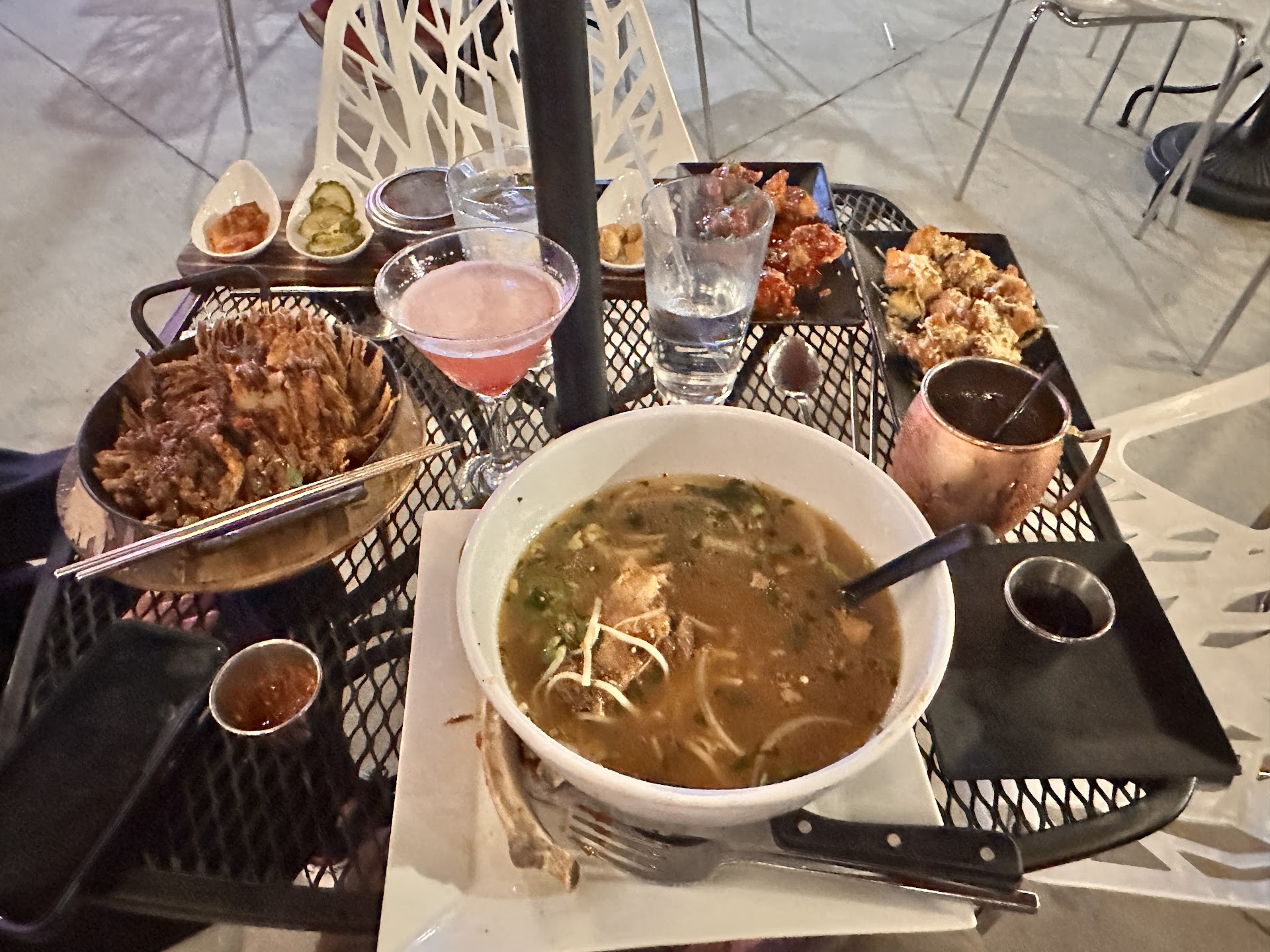 After that, we did the bulgogi, and the phozilla. Starting with the bulgogi, it’s everything you want in bulgogi, only on top of a blooming onion! So delicious. We barely put a dent in it. Now onto the phozilla. It said “do not take this lightly” and they weren’t kidding. It was the biggest bowl of pho I have seen. It even had brisket and a full rib in it. If you are going to order this, bring your biggest appetite. I can put some food away and I barely was able to get through 1/4 of the bowl before I was so full I thought I was I going to have to be wheeled out.