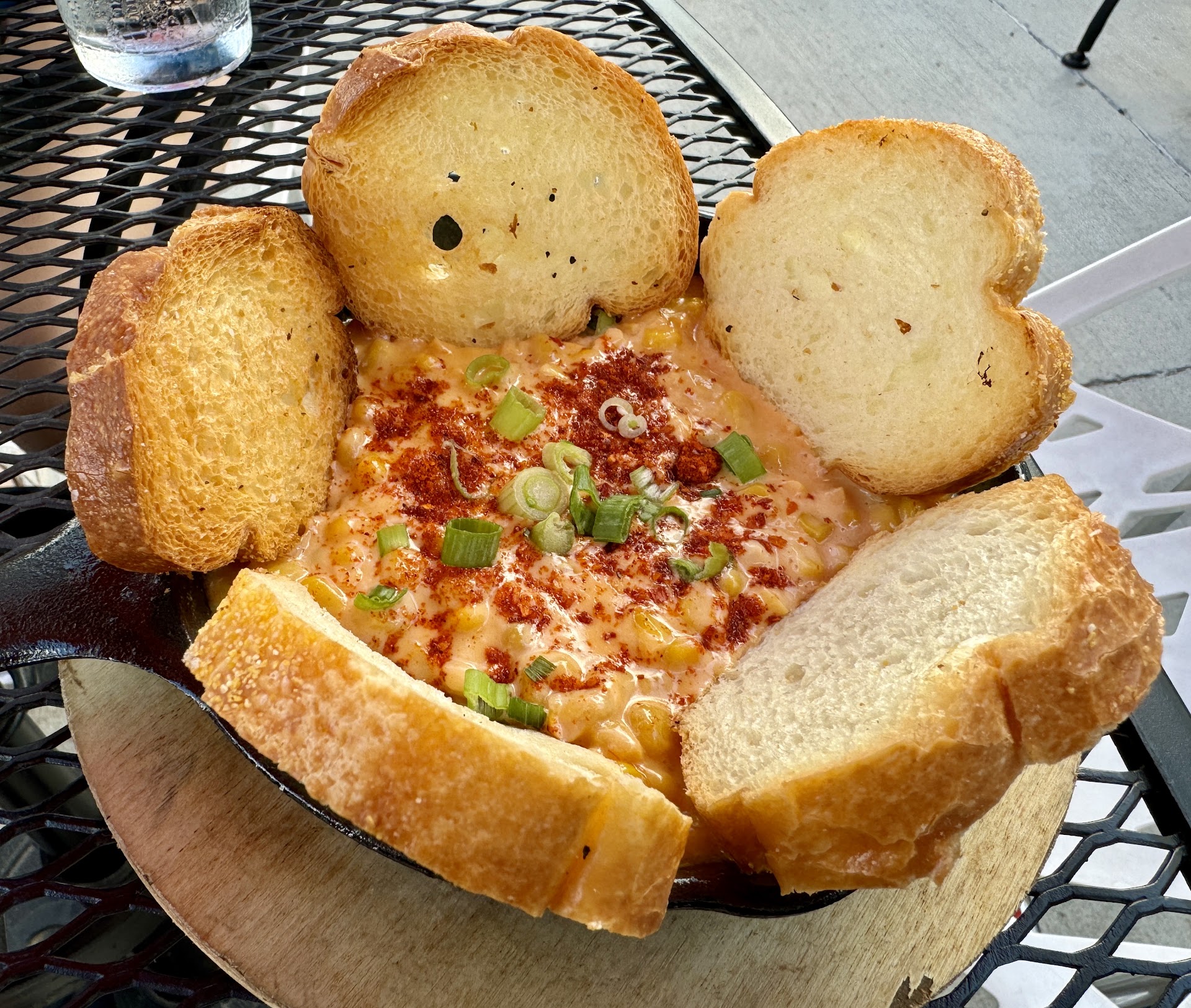 We started with the Korean Cheese Corn Skillet, which was a flavorful, albeit familiar, experience. The dish reminded us of cheesy Mexican street corn, but this didn't detract from its appeal. The bread served alongside was a delightful touch, and they graciously offered to bring more when we ran out before finishing the dip.