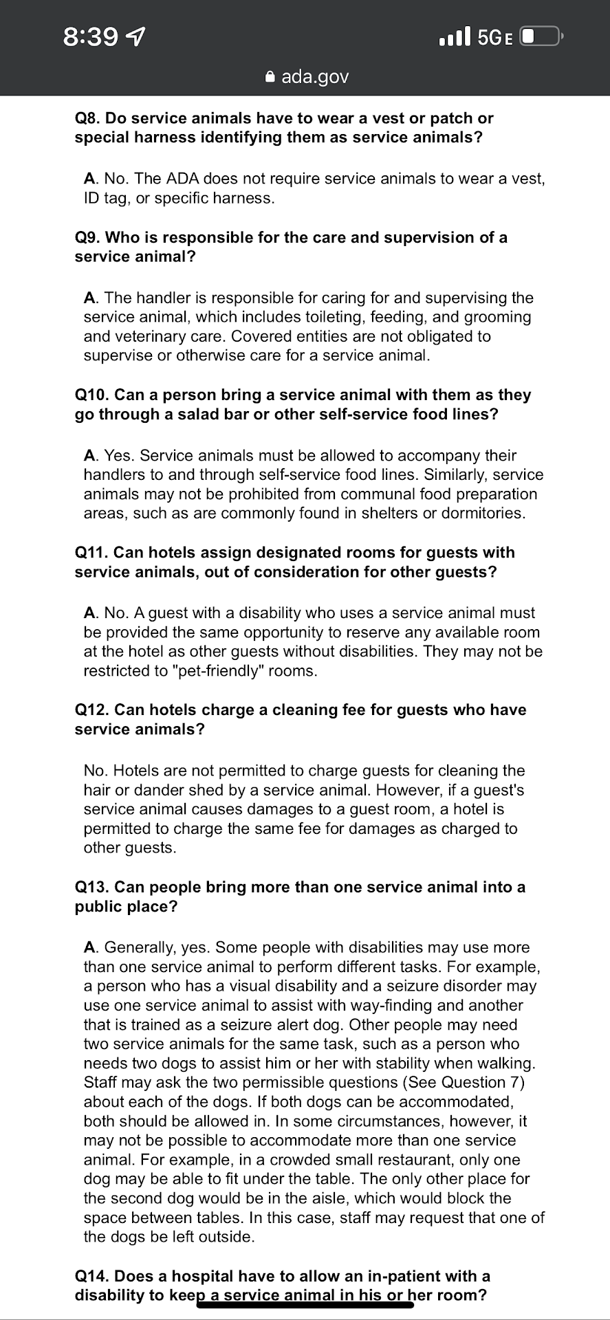 Read moreHad an access issue with my service dog because some people don’t know that by federal law you’re not required to show identification or certification and that they are not allowed to ask for proof of anything. They are only allowed to ask two questions. And upon showing the owner or manager that that was the law she still continued to press for some type of identification. And then after I explained that again she said that what if her customers were allergic or had a fear of dogs, and I proceeded to tell her that she wasn’t allowed to deny a service dog based on those reasons and then she proceeded to ask for identification and so I left because I’m not going to try to reason with someone who isn’t able to...