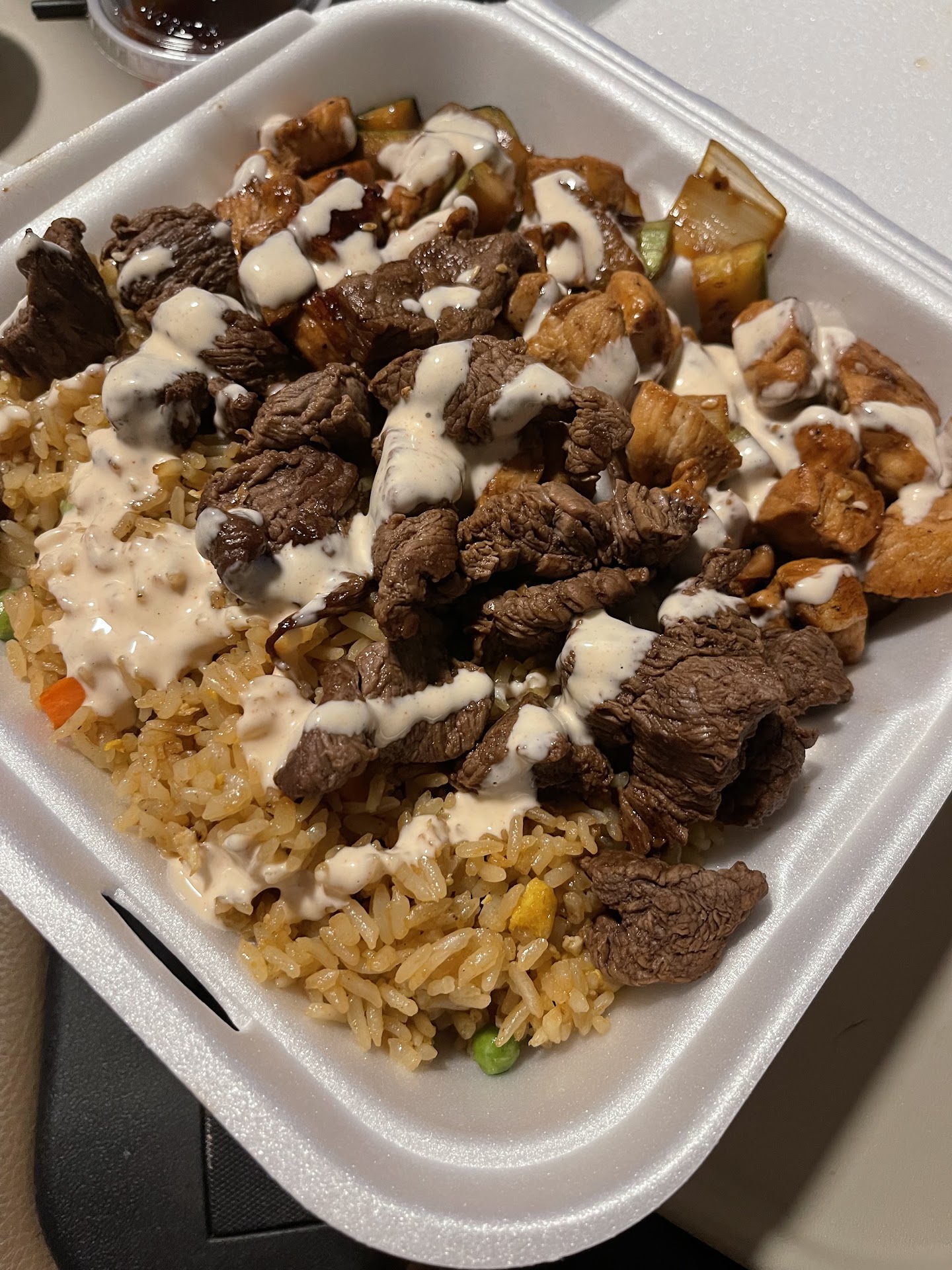 Read moreLatin Hibachi Grill was hit. I ordered the vegetarian hibachi plate, with a side of shrimp(8),10 BBQ wings/w fries and a pineapple drink to wash everything down. The food truck area where the food was prepared and restaurant were I waited on my food was clean and tidy. The restaurant was nice and cool on this hot day. The food was delicious. The wings were Awesome!!, they were a nice mid size, fully cooked and Krispy, fries were decent. The vegetarian hibachi with fried rice had good flavor and loaded with nice tender vegetables. The side shrimp were full of flavor and cooked to perfection. I will...