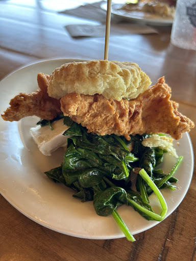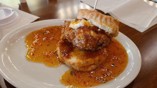 The biscuit was soggy with too much "pepper jelly" which is actually just a sweet Thai chili sauce on it. Chicken was chewy and tasted like it was being held under a heat lamp.