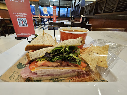I walked in the front doors to this restaurant to feel and see a freshly new prestigious clean restaurant. You could feel this restaurant was new. I walked up to only wait a few minutes before Beau took my order. I asked if they have gluten-free bread to have a club sandwich, and she is yes. She asked if this was a preference or an allergy? I appreciated the question because not everyone would take the time to ask. I said it was for an allergy. She immediately turned to the staff in the kitchen to convey this order was for an allergy, not preference. The kitchen staff stopped to acknowledge the use of the safety protocols for the order. I also asked about what soup was GF to find my favorite tomatoe bisque was available.