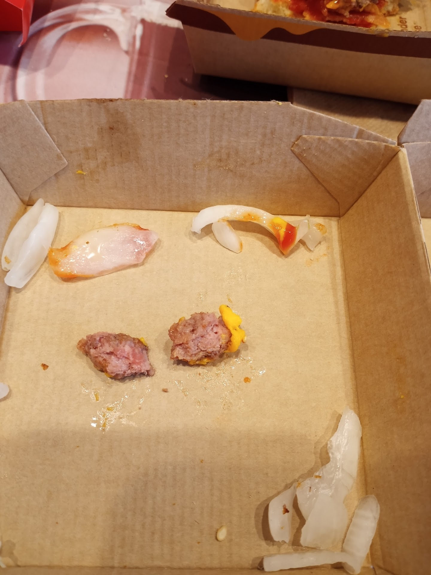 Read moreWon’t be returning to this location. I know reviews don’t really make a difference to the company because they make so much money anyway and it’s probably just a waste of my time but this was one of the worst McDonald’s I’ve ever been to, and I have done A LOT of traveling in my life and visited a lot of McDonald’s. I ordered a double cheeseburger, 1 because that 2nd piece of cheese really makes a difference and there was only 1 piece of cheese, 2 I asked for extra onions ON the burger and there was basically less than the normal amount actually in between the buns as you can see in the pics I’ve included they were all over the outside of the bun and mostly on the wrapper, 3 it barely room temperature by the time we got it. Our fries were old and ice cold so when we saw them take fresh ones out of the fryer we asked for those. The chicken nuggets were fine, and so was my snack wrap. But the employees also weren’t the friendliest, one of them was going on and on and on about how much the snack wraps suck the entire time we were inside which was about 20 minutes…..yes it took about 20 minutes for us to receive a large fry, 6 piece nuggets, snack wrap and double cheeseburger. Over the past few years McDonald’s has been getting worse and worse and it’s just really a waste of money to even go there at this point because I always have a complaint, and I’m really not...