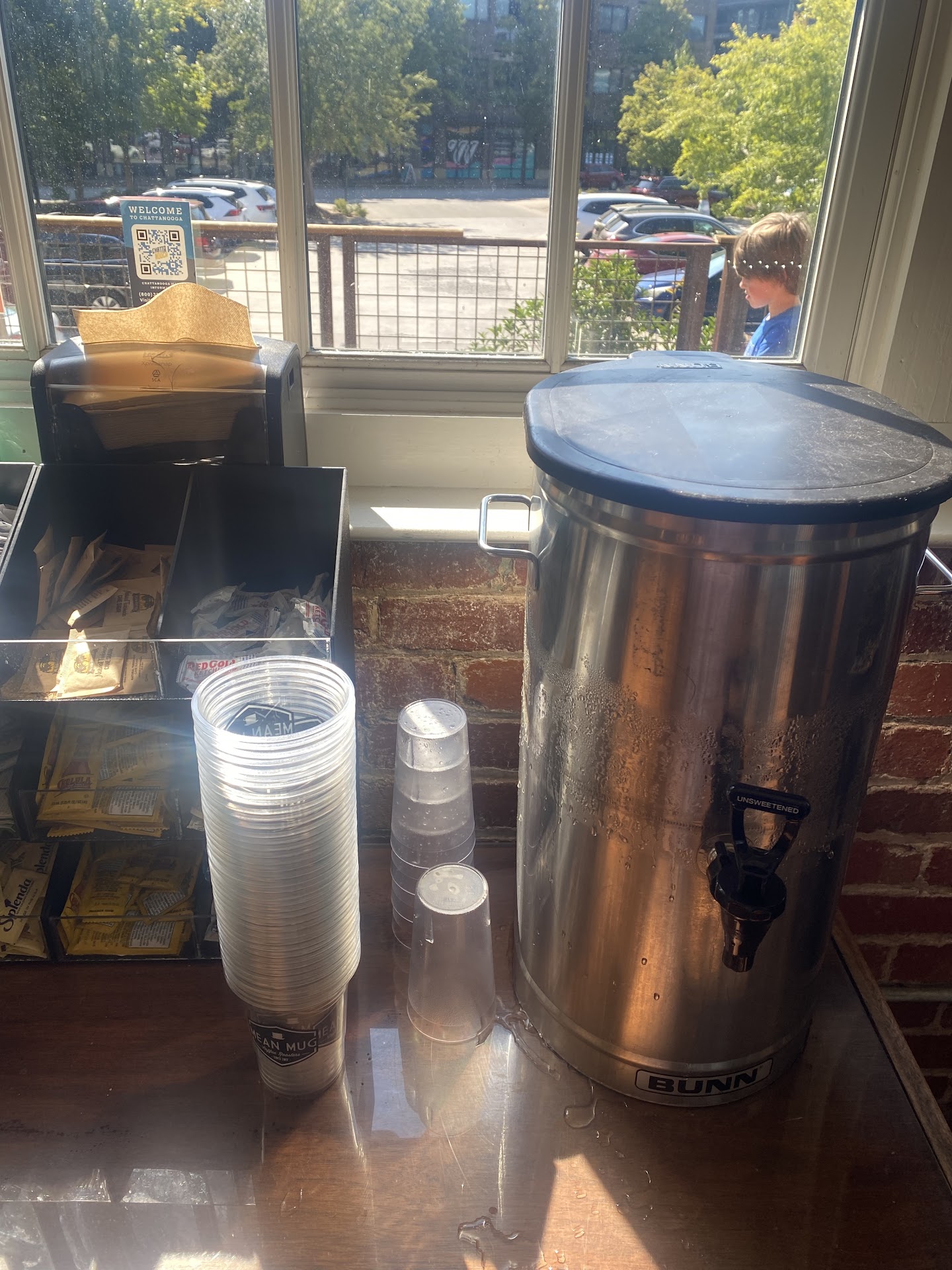 The lady (receipt says Martha Grace C) at the register said, "to go? ...or for here...." and had paused as if the "for here" option was not good.