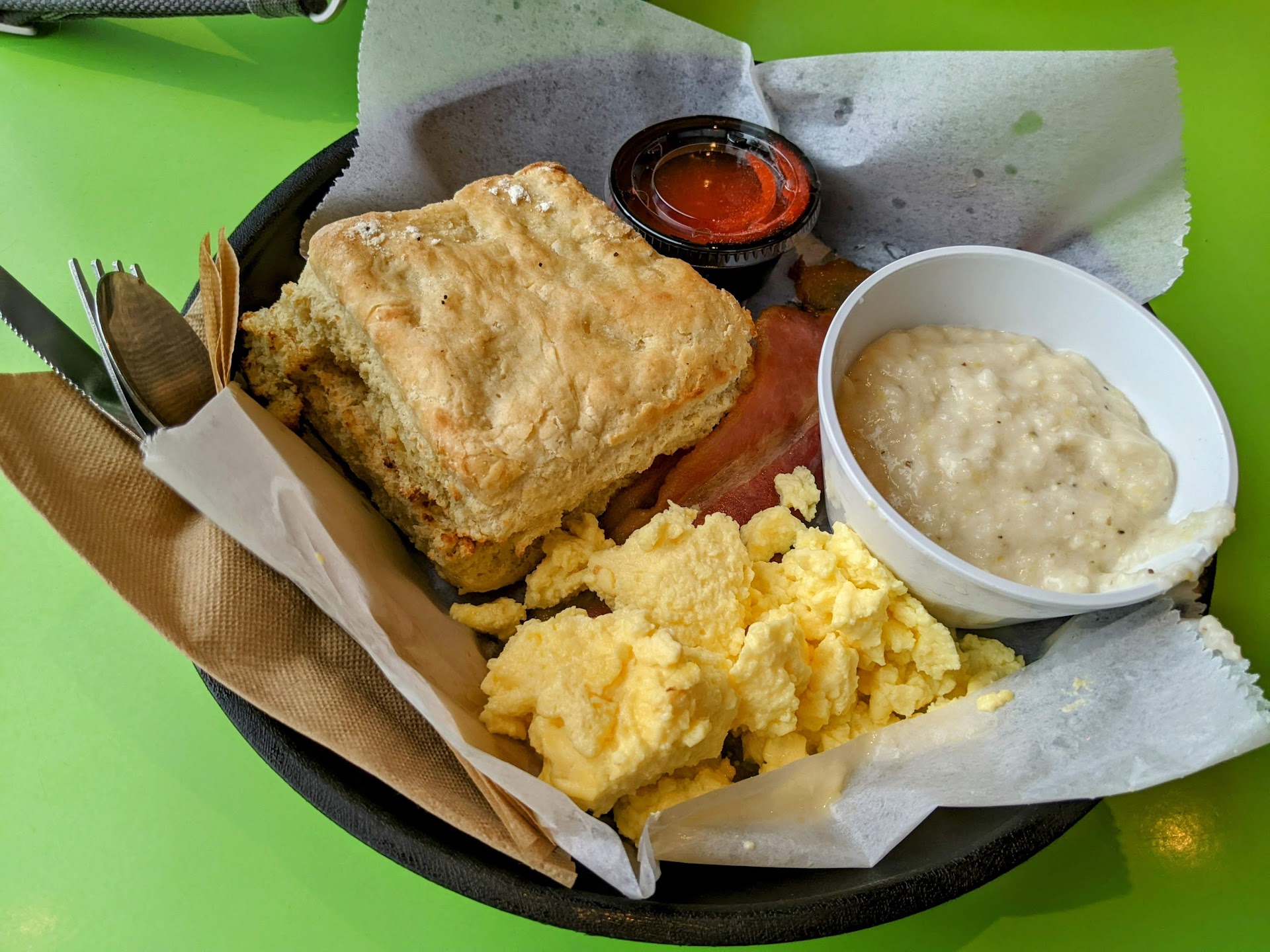 But the breakfast plate honestly looked thrown together like a gas station meal. The potatoes had a large brown crusted mass that looked to be crusted leftover food from the grill.