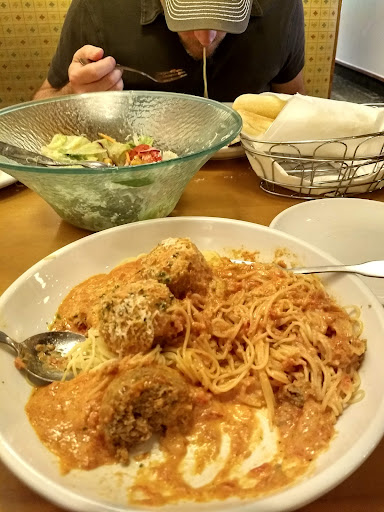 Read moreHere I am, an older man that has never been to any Olive Garden, but wanted to. Won't say it was a bucket item, but you get it. My spouse's eyes lit up when I asked what they were thinking for lunch. "You said you wanted to try Olive Garden..." SOLD Was it the most outstanding Italian I've ever had? No, for that I would need to return to Italy, Sicily, Boston and New York City. But for a chain they served my spouse and myself a very decent meal. Star, our server, was a star. She was informative, funny, attentive and answered all questions and guided me in selecting just the perfect meals. I got the make your own pasta with angel hair, 5 cheese marinara, meatballs and sausage. She didn't hear me asking for sausage, so when it was brought out and I enquired and she said she missed me asking and promptly brought the sausage. The salad with house dressing was good and the breadsticks were fresh out the oven. Yum You know when you're in the mood for something and everything lives up to your expectations and hopes? That was this meal. The food was good and the service was fantastic. That is some of the best sausage I've had outside Fenway from the sausage carts that lined Yawkey Way. Their cannolis need some work. The filling far too dense, but decent flavors. Their tea was brewed well. Yes, they're a chain, and as many reviewers have said, been to one, been to them all. Well there is something to be said about consistency. That's what Ray Kroc went for with that little chain, McDonald's. You have an expectation of knowing exactly what to expect when you are away from home and stop for a meal. Neither used the restrooms nor anything from the bar, so can't comment on those aspects. Nice first impression of a chain I've...