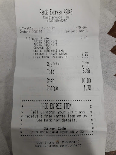 Read moreToday on 08/05/2019, Ben, the manager at Panda location 2046 told me today that their location does not allow the GEM discount on premium items. I was upset and expressed that I am from San Diego, Ca and every location out there has always given it. He said that locations are allowed to offer or not what they want.