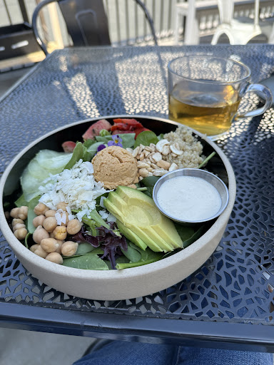 I was actually leaving from next door at REV and passed this small sweet spot on the way to my car. Never having been in there, figured I'd check it out. Upon entering, it was immediately very calming. The gentleman behind the counter was quick to welcome me and ask if he could help me. I explained this was my 1st visit & would like to check out their menu. He gladly handed me a physical menu and also pointed to the wall where everything is listed. I ask about teas and ended up leaving with a hot chocolate as it was a brisk morning. My hot chocolate was hot but not to the point I had to wait 30 minutes to drink it (which I was more than happy about). It was absolutely delicious & as I scanned the Cafe while waiting for the hot chocolate. I was amazed at how sweet and gentle everything was and felt. They also have a small patio to the side with plenty of seating & what appeared to be heaters (this will be amazing to stay warm around with the coming season). They had a small area set up with straws, napkins, and utensils. The menu has so many wonderful sounding dishes and drinks to pick from. I'll be visiting often. The young man explained what his favorite dish is so I have to give that a try asap. I'd definitely recommend this sweet spot. I don't think your choice would be of regret. They have great prices too. It is from what I remember. Mostly vegan but very healthy and tasty sounding options. Give them a try đ«đ«đ«đ«đ« edit to add to I can also now highly recommend the Gingersnap Latte as well as just the iced gingersnap. They are delicious!!! Also the oil free chocolate chip cookie is so good that I'll be grabbing one...