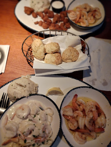 Read moreI went there with my wife and youngest son for the endless shrimp. The food was fantastic. I ordered the hand breaded shrimp as well as coconut shrimp bites as my pairing and the wife ordered shrimp scampi as well as the hand breaded. I found the Pina colada sauce to be a tasteful if spicy condiment. Due to recent dietary changes I have found that many items do not taste the same as they once did and I feel that this explains the unepecred spicieness, other than that the food was cooked to perfection. The shrimp we're not overly cooked as is often the case when one orders at a seafood restaurant. The sides, clam chowder and caesar side salads were both properly made and delicious. The service was very good with our waitress being very attentive in keeping both our glasses and bread basket full. She was also very helpful and inforformative with questions about the menu.Our meal was served promptly with no mishaps everything was exactly as we ordered it. I must say that this was the Red Lobster at Northgate in Hixson which is our go to location. The atmosphere is dark and casual and depending upon the time can be quite busy as we went at 4:00 pm it was rather slowvwhich was quite nice. This is a really good place to eat and I have always been quite happy with both the food and the service. It can be a bit pricey depending on what you order, obviously, but you get your money's worth. Well...