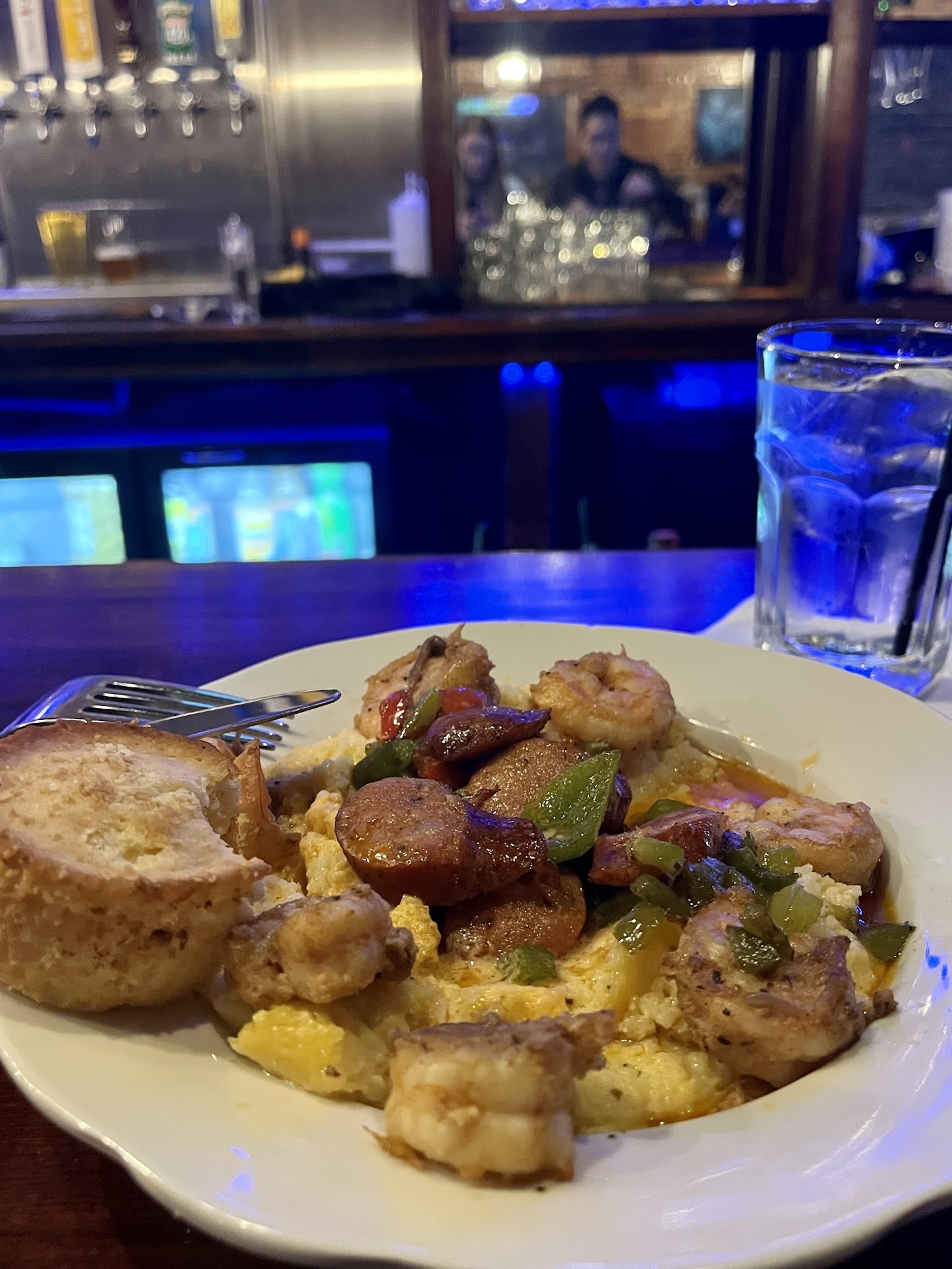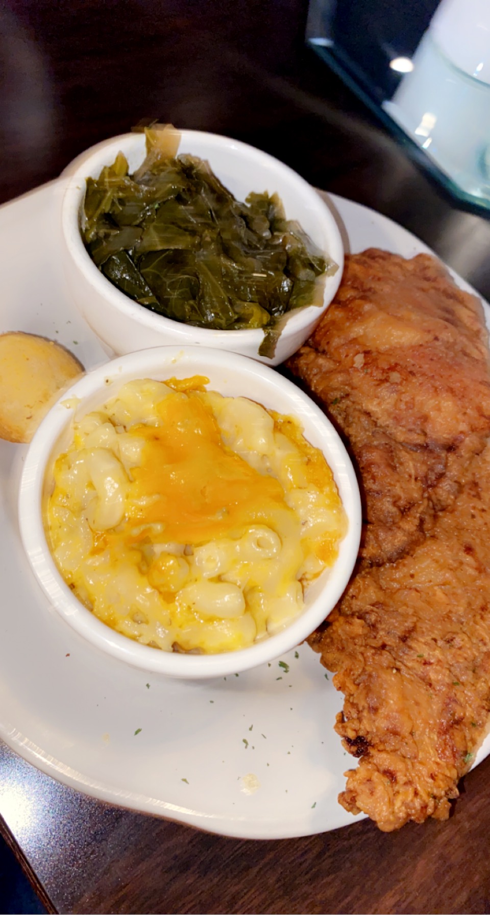 Where do I begin. Muffins were sweet and fluffy and would try again. Eggrolls missed the mark for me, the best thing about these was the wrapping. I get it is something different but the blackeye peas, collard greens, rice and whatever else was inside had no flavoring and was not enjoyable to me. Felt like leftovers for NO REASON. I would not recommend or suggest these for anyone. Yams I was able to add to my cart on line but when we arrived we were told they were out-did not try. Mac n cheese was just okay. I wasn't blown away by it, standard elbow noodles with cheese but No WOW factor. Collard greens had an overpowering of onion taste and I did not enjoy those at all. Really no seasoning beyond that they were a miss for me. Wings were 3 out of 5 had a garlic undertone, flavored throughout so the seasoning technique was good. Cooked well and a decent size. Shrimp and grits were the Star!!!!!Flavored well, tasty and delicious.