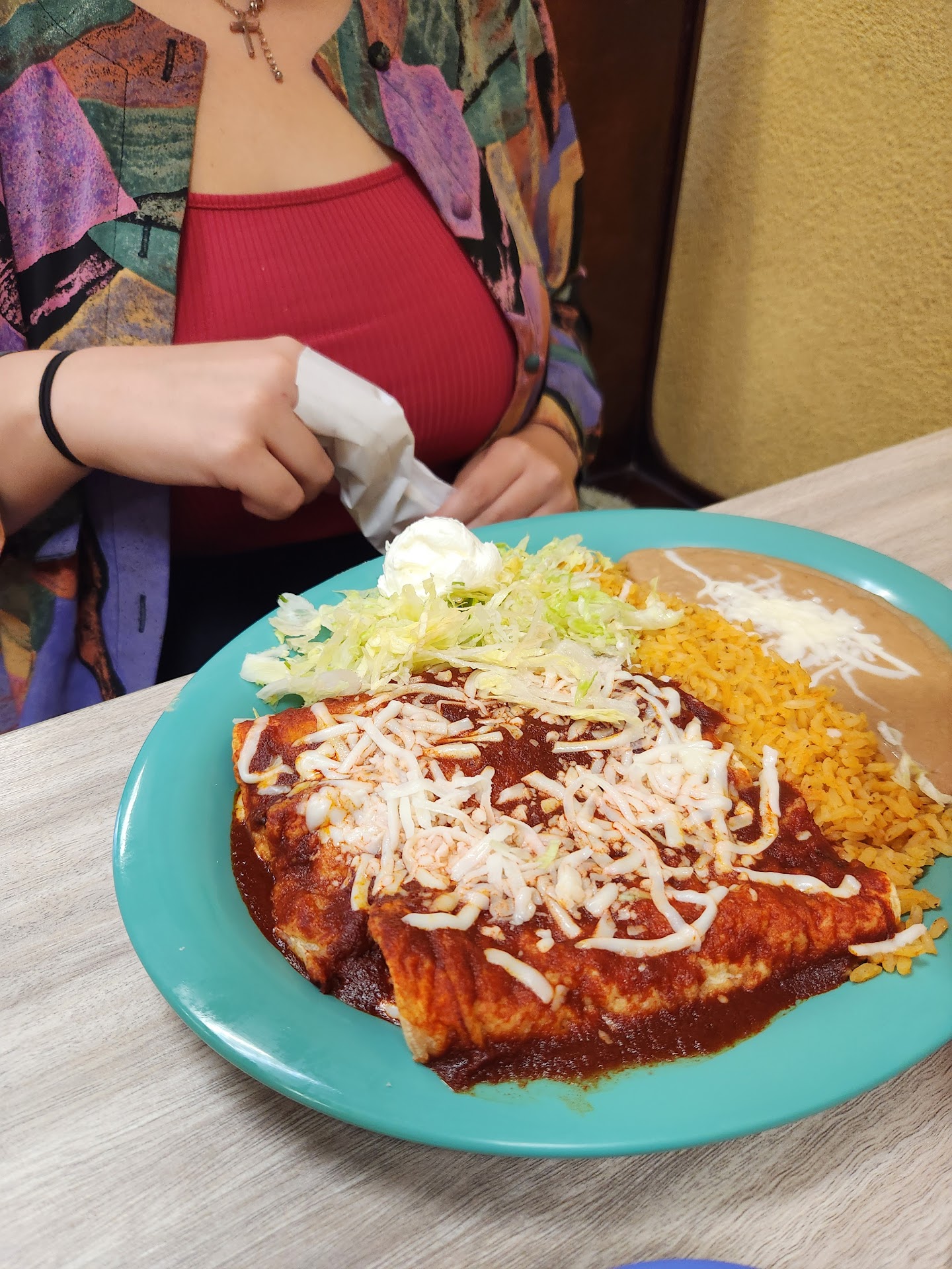 Read moreCalled for directions but no one could speak enough English to help us. 2. Finally found it, but very disappointed. Building looked dumpy and in need of a good cleaning and remodeling. 3. Entire foyer looked and SOUNDED like a day care for the employees young children. 4. Had trouble placing our orders the way we wanted them because of the language barrier. They also make you order and pay BEFORE you sit down at your table. 5. They don't serve free salsa and chips while you're waiting on your meal. You have to pay for them each time you ask for them. 6. They also charge $1.50 for every drink refill. 7. Had one working TV that was playing too loudly but not loud enough to drown out the "day care" noise. 8. Saw a teenaged female walk out from the kitchen/office area to get a drink refill wearing house shoes and pajama bottoms! (Are people living on the property???) 9. I ordered the #7 and the pork and chicken tasted so bad, I returned my 98% full plate for a refund. And again, that was awkward because of the language barrier. When the manager was called out, she never said a word when she was giving me my refund. No one else did either. 10. And last but not least...after seeing a third cock roach crawl under our table, we were outta there! * There were 2 smiling and friendly girls who were nice and polite to us, but other than that, it was a bad experience. I am puzzled by all of the good reviews...