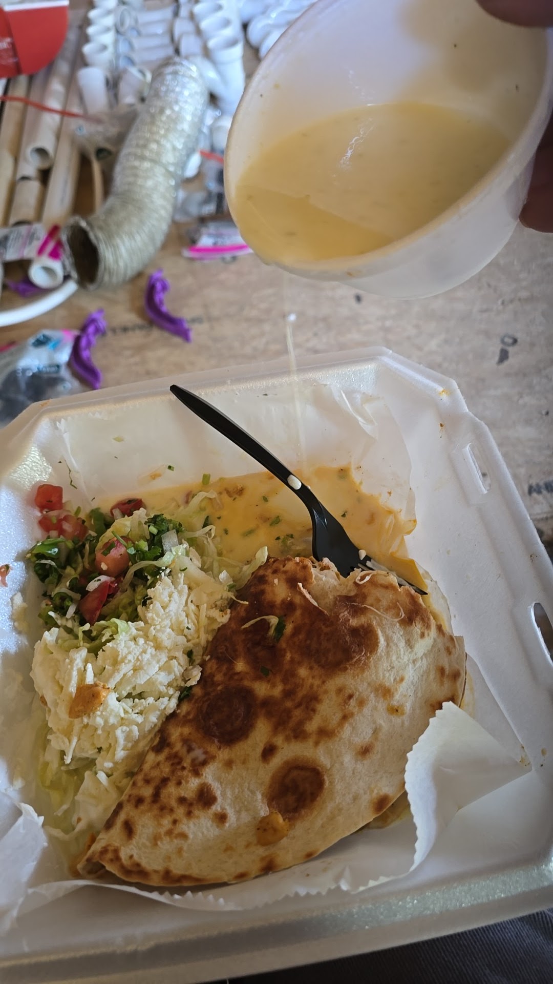 Read moreSo the food seemed overpriced. 4-5 bucks a taco is a lot. The place at 530pm was being mopped with pure pinesol and the smell was overwhelming. 2 people in our group would have ranked it one star and two of us 4-5 stars and one guy 3. The guy that ordered the chicken wings (mild) didn't care for them. Said they were dry, the chicken itself, and the sauce only had a hot flavor like no other flavor profile. Two people order the special chicken burrito. Neither knew that the chicken inside would be spicy. So that was then a one star from one, but the other person liked the burrito and the salad with it. I had the Quessabirria and it was fantastic. My husband had carne asada tacos and where as they were tasty he felt they weren't worth 8 bucks for two. The menu is busy, the parking lot small. So I think it's hit or miss with the food, like order the right thing birria anything and it's amazing or something else it...