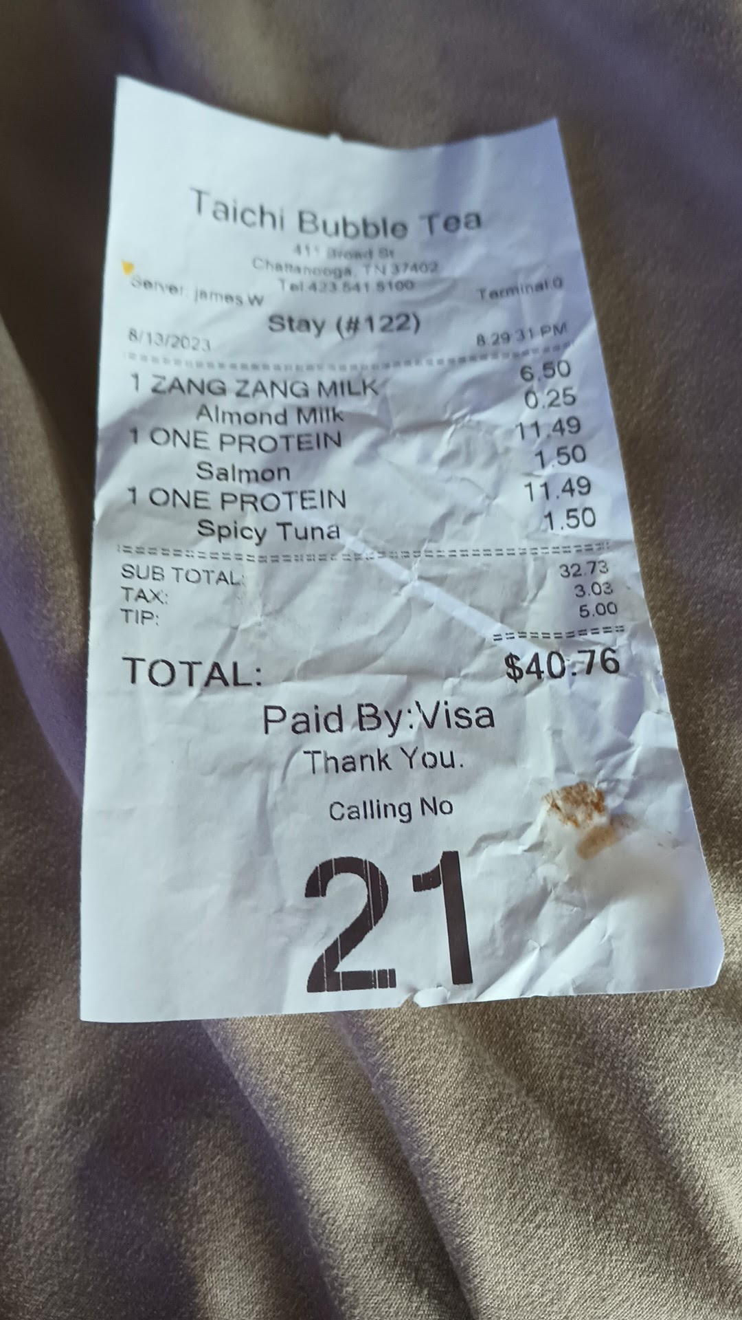 Read moreWe were visiting Chattanooga and walked past this lovely boba shop. First of all the entrance to this shop is very awkward and inconvenient. There is no proper way to stand in line without being directly in front of the booths where patrons are eating. Itâs very cramped and uncomfortable. A young couple in front of us had a baby in a stroller and were ordering their boba drinks. The woman with short blonde hair at the cash register was so rude!! She seemed annoyed and frustrated at this couple for taking up space with their stroller and asking about their different drink options. This restaurant is in a very touristic area, visitors need a minute to look the menu and see what options there are. The cashier was constantly asking âare you ready to orderâ in a very passive aggressive tone. When I ordered she was also very dismissive and rude when I was asking about their tapioca pearl options. I ordered a papaya milk tea and when my order was ready I received a different drink. The cashier rudely said âyou can come pick your drinkâ when it was ready. I told her that drink was not mine and she responded saying âoh well, thatâs what I heard you order.â She then turned back to remake my drink as I had ordered it the first time. The milk tea was DISGUSTING! The boba was so stick and had a rubbery chewy texture. It simply tasted like watered down milk with a 10% papaya flavor. I threw my drink away soon after waking out. A word of advice for this shop and its staff : kindness is not hard. A simple gesture or kind words will make a persons day. Kindness and respect will make people feel happy and valued. Please teach your staff to help guests and make your customers feel good about being and ordering from your shop. Treat others the way youâd like to be treated. How would you feel if this was the way you were treated at a shop you were visiting for the first time?
