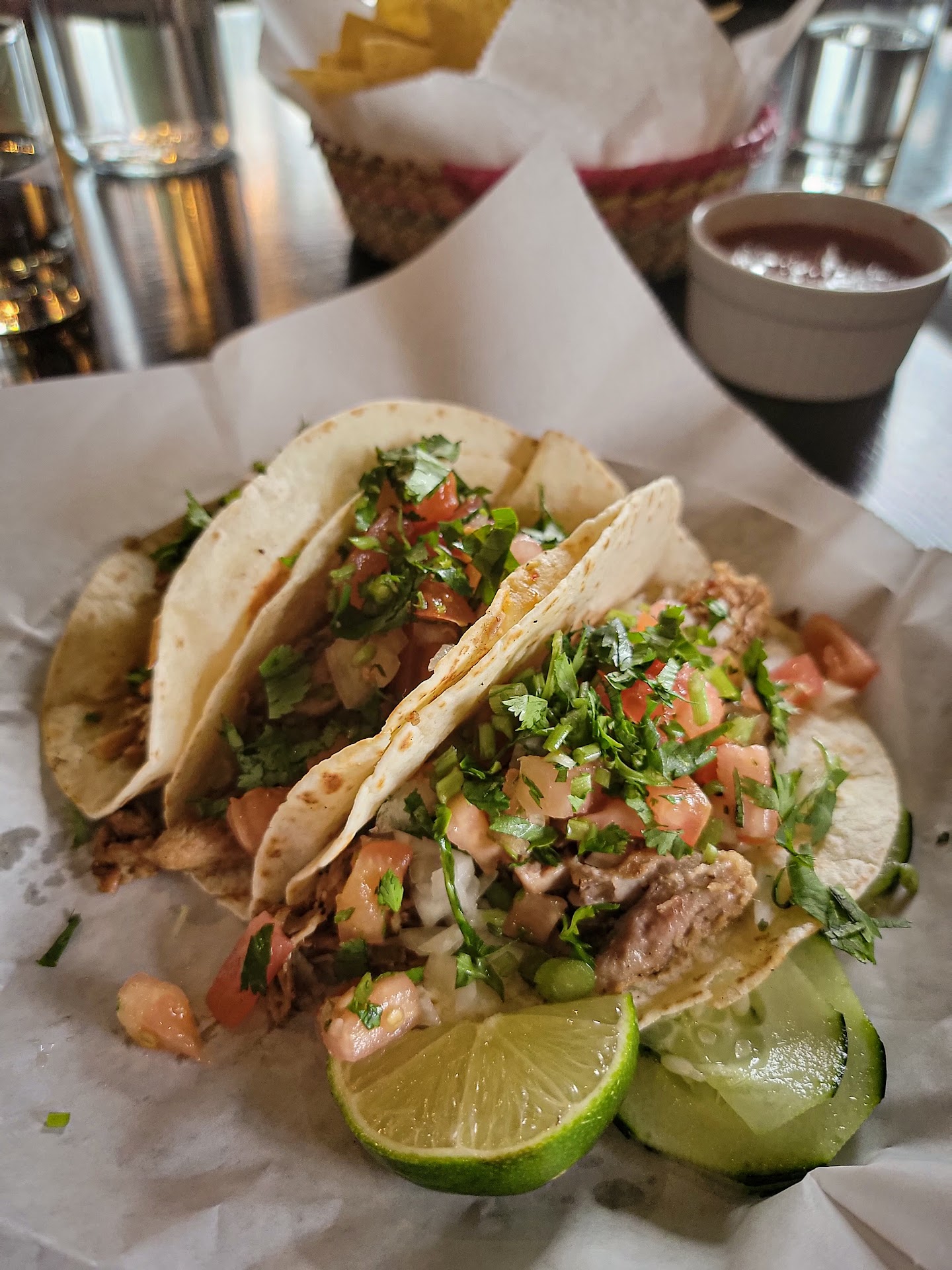 Read moreWe were passing through town and my boyfriend was in the mood for street tacos and I found this place was close by. We stopped based on the food and good reviews on a Monday afternoon at 1:15. I was so hopeful, but we didn't have a good experience. We were seated promptly, but were waiting about 10 minutes before our order was taken. Took at least another 10 minutes just to get our chips and salsa. Our food came out about 30 minutes after that. Mind you we ordered tacos and a tostada. Well one of our tacos and tostada was missing. 15 minutes later and still no food. After waiting my boyfriend asked for the check and asked to cancel his taco, but I still wanted my tostada. When the check finally came the tostada wasn't listed so they cancelled both items which was super frustrating. We had a long drive ahead of us and were both frustrated and just wanted to leave. We didn't even wait for the waiter to come pick up the check. My boyfriend went straight to the bar to pay. With such an experience I can't recommend this place. The tacos were fine, but I've had better elsewhere. I did enjoy the chips and salsa. The whole restaurant seemed to be having slow service. The couple sitting next to us said they had to get back to work and were still waiting on food. A guy waiting for takeout was waiting over 15 minutes and people that came in after us got their food before us and ate and left before our food came out. I'm not sure why this was and no explanation...