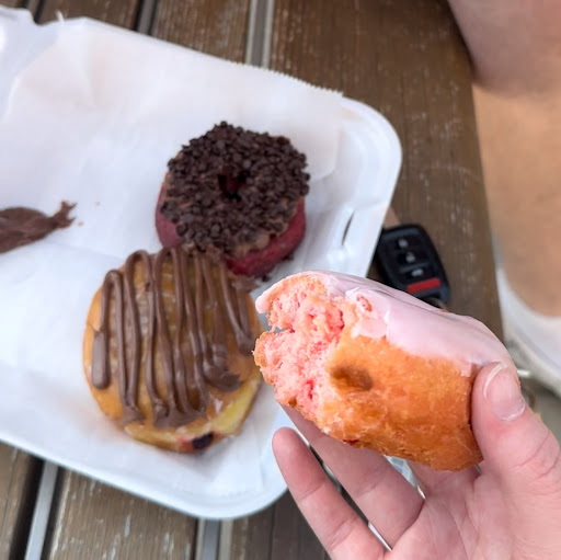 I started with the donut holes and honestly, I probably could've got a dozen for myself. They were delicious, bite sized, and had a nice soft and chewy texture. I loved it, no complaints. For the next morning, I had my strawberry jam glazed donut. The next day, texture held up pretty well. It was still soft and chewy. I had my first bite and was so surprised and how much jam there was inside. Tasty Donuts does not play about filling. It was good. The jam was slightly too sweet for me, but it didn't take away from my experience. It was still tasty.