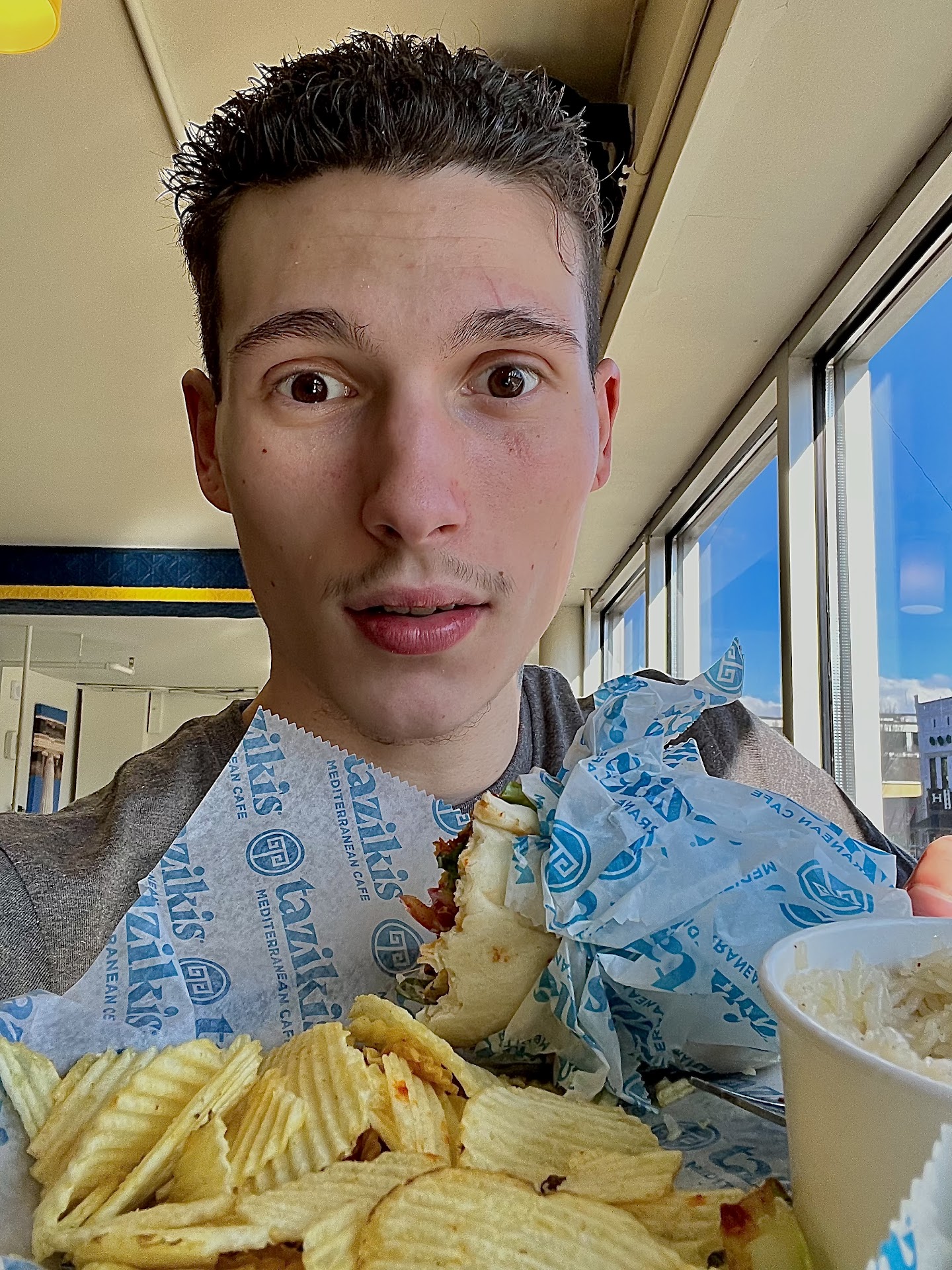 We kind of had high hopes after talking to the police officers enjoying their lunch. We both ordered a regular gyro, lamb (which is supposed to be shaved, not dried up yesterdayās chopped up whatever meat that was) and the cucumber salad and my daughter got the kids chicken dish. The food comes up and you can tell right off the bat that itās old. Kids chicken was visibly dry as all get out, the cucumber salad is at least 4 days old(I eat this at home, I know when it goes bad lol) but we go ahead and try the food. The first bite of the gyro I tasted fish, I thought maybe it was me but then my dad agrees. So I go down to talk to who Iām assuming the manager(tall, skinny kid with a slicked back ponytail that has zero experience working in hospitality) is and he 100% played it off like Iām stupid. Iāve been in this industry for 20 years, I know all the tricks. Anyways, he gives me the typical run around not wanting to admit their fault. Ok, thatās fine, I gave him the benefit of the doubt and had it re made with him REASSURING me that the meat and fish are cooked in seperate grills. Mind you, from the upstairs, you literally see the entire line, thereās ONE flat top going(I wear glasses and couldnāt identify what was actually on it) Food finally comes out but now theyāre done and Iām annoyed so I take it to go. I get home, still hungry so I tried this one..I mean really?! Itās even fishier and drier than the first! And you forgot my week old cucumber salad and tzatziki I paid extra for! Long story short, if you have a fish allergy, please go elsewhere! This could potentially lead to a death. Health department has been notified and I will be doing a...