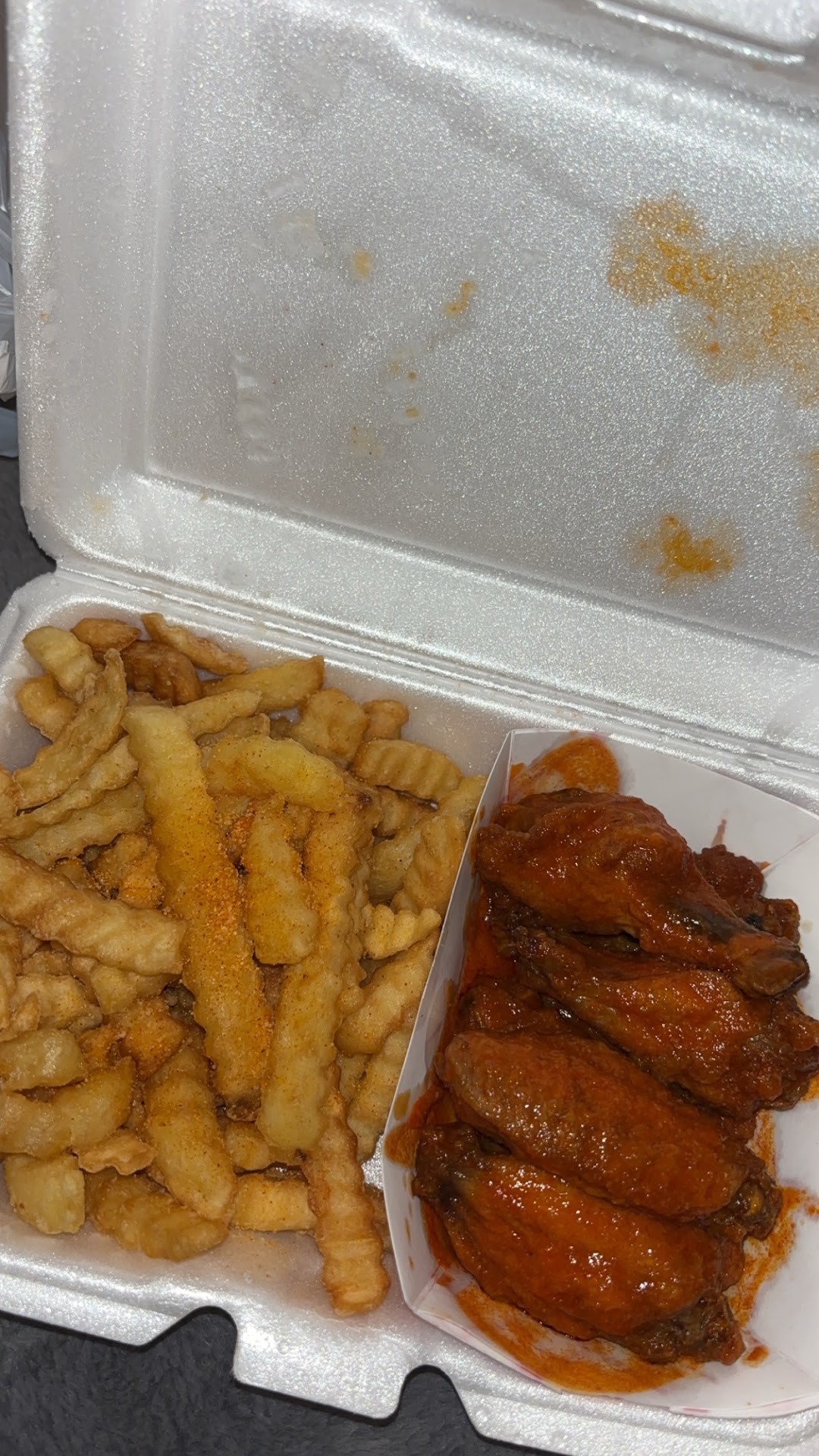 Read moreI went yesterday. The wings are flavored great (though the fries are obviously storebought crinkle types, why not buy potatoes and serve wedges? But you do get loads of them) but the service and cleanliness leaves a lot to be desired. 3 women were behind the counter, 2 were gossiping. Whatever their job was, it seems unnecessary. The mixed girl with the colorful arm tattoos was the only one who seemed to be doing her job. I go to get my drink and the whole floor is nasty, covered with spills. This place just opened, how is it so dirty? Then when I go to the counter to get my combo, one of the gossips asks if I would like seasoned salt (it was regular salt). She then made it obvious I’m to put the salt on it... What is your job???
