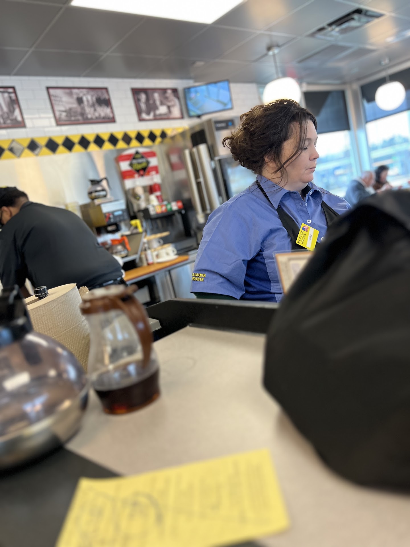 I love Waffle House,today when me and family went for breakfast they were busy as usual. When we arrived no one ahead of us waiting to be seated, one table was ready to be cleared and cleaned so we could be seated. A young man took it upon him self after seeing us waiting for about 10-15 minutes to clear the table as this was not his station, he knows the value of team work.. I thanked him , he took our drink order gave us our silver wear and told us he was not our server. Now I saw the server who worked this station when we arrive and she made no effort what so ever to clean table for us to be seated. When our server came to take our order I saw that her Name was Lulu. Lulu took our order. My husband and I were having a private conversation about how we felt that the waffle by the Texas road seemed to have better service. Lulu listening to our private conversation took it upon herself to ask me if I was ok with waiting, she said she heard us say something about the other Waffle House . I said sure no problem we can wait. After I thought about it, it was not her place to comment on our private conversation.But Lulu made me feel like she wanted me to leave when she asked me more or less if I had a problem. She never said but her look and her whole demeanor was you can go somewhere else and we did we told her that’s ok and we left. Been going to Waffle Houses all around.I wonder does Lulu work for Waffle House and I should be glad that she even took my order.Lulu just lost the Waffle House a...