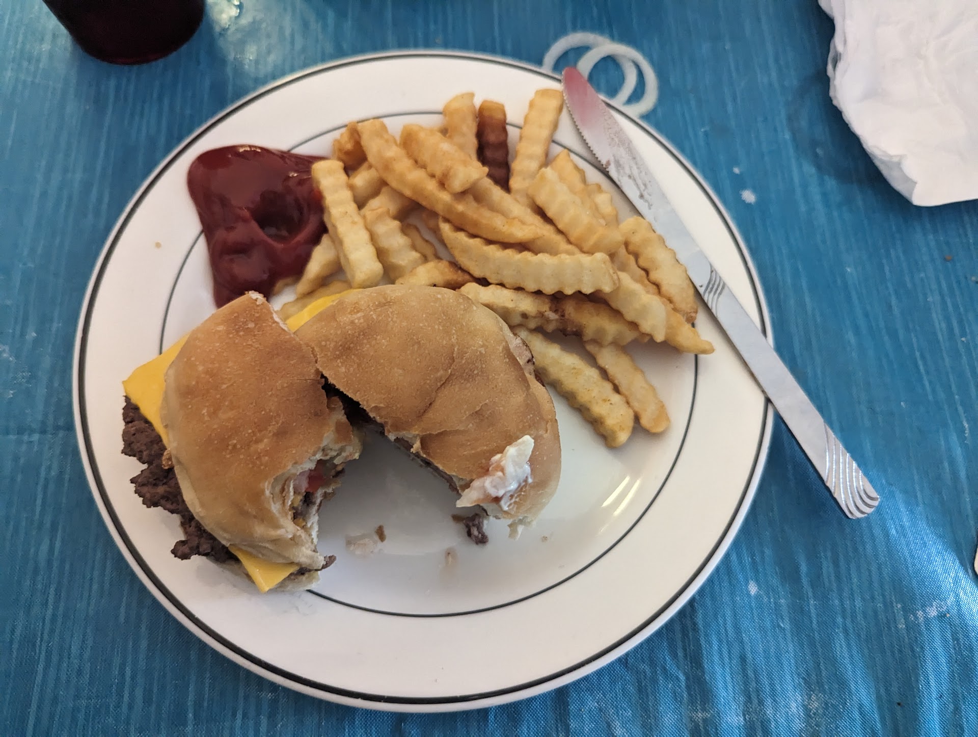 The cheeseburger was incredible served 'all the way'. The cornbread was crisp on the outside and fluffy inside. The sweet tea was indeed sweet but very refreshing. The sides I enjoyed were turnip greens and the black eyes beans. The coleslaw was absolutely the best and I like coleslaw.