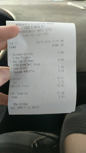 Read moreHad a horrible experience with a manager there last week. I was camping down the road at Cheboygan SP and it was late and a rain storm rolled up. We tried to wait it out but in the end was not able to and we decided to drive into town and get McD's. Their hours online were wrong and we ended up walking in about 15 minutes before the lobby closed. The manager on duty, Jacob, immediately went on the defensive, telling the cashier that took our order that we would have to take it to-go (like we weren't standing right there). As she gathered our food, he went about filling drive up orders and trash talking us to other staff. Saying things like, "It never fails, someone always walks in at the last minute" and "Oh, I bet they are gonna mess up our clean lobby, I want to go home". Needless to say, when I confronted him, he walked away to take a drive up order, never to come back and talk to me. We received our order and left only to find out that it was not complete when we got back to our campsite (but i guess that's on me, after Jacob's stellar managerial skills, I should have checked my order).