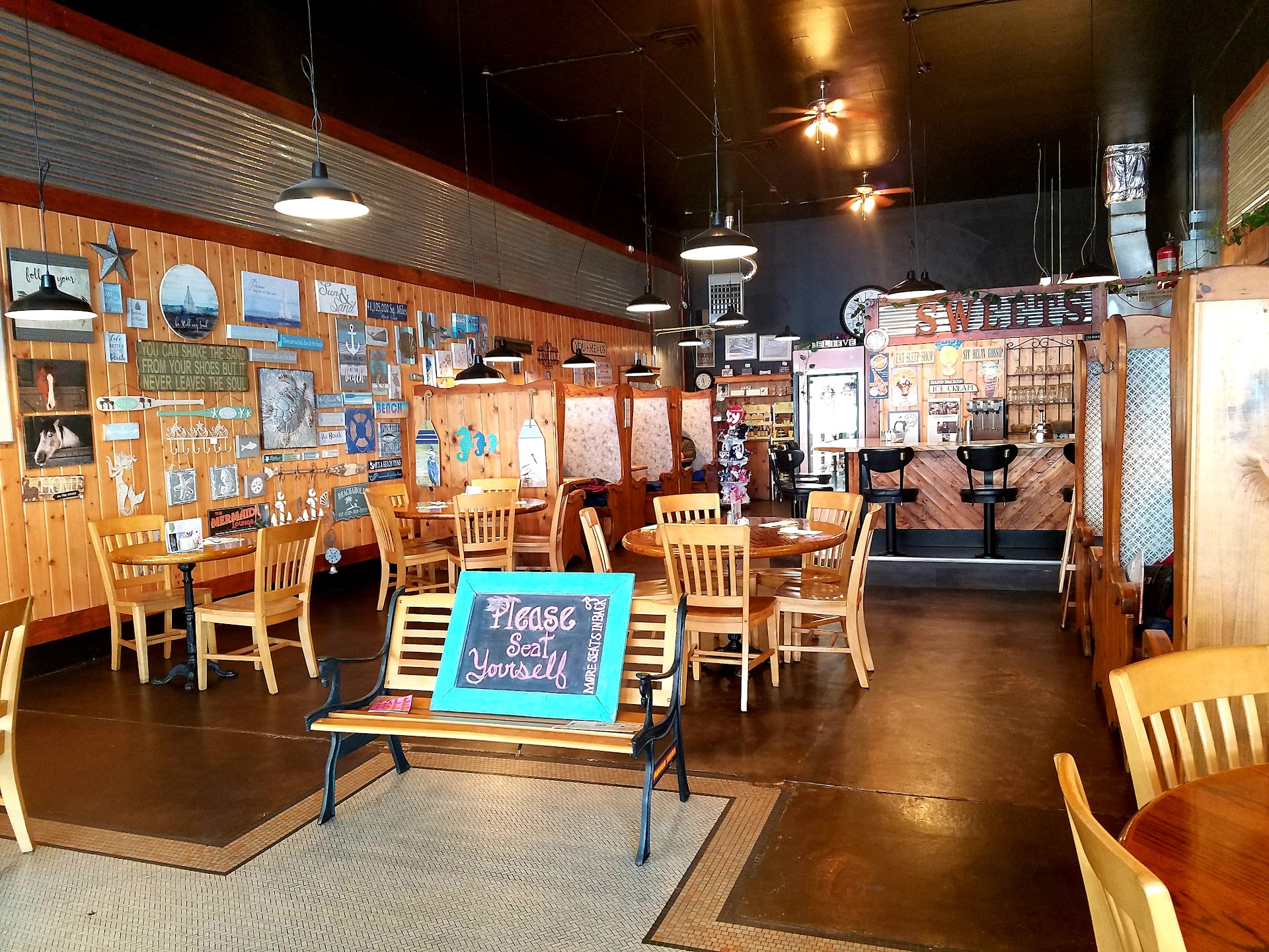 This place is in downtown Chehalis in a remodeled historic building. As long as I can remember this place has functioned as an old time soda shop type place. The decor is great, they have barstools for customers to sit at and order food or a soda or long booths you can stretch out in. I like to go here when I'm not in a hurry, and I don't mind spending a little more time. This is a nice place to come with friends or business acquaintances due to its private feel. The food is appropriate for families but for me with kids it would be a little too pricey and maybe not enough food for them, therefore 4 stars for me personally. The food is good, the homemade potato chips were great. There is a couple options for vegetarians, one is a veggie sandwich. Overall a comfortable hometown place to spend a rainy day,...