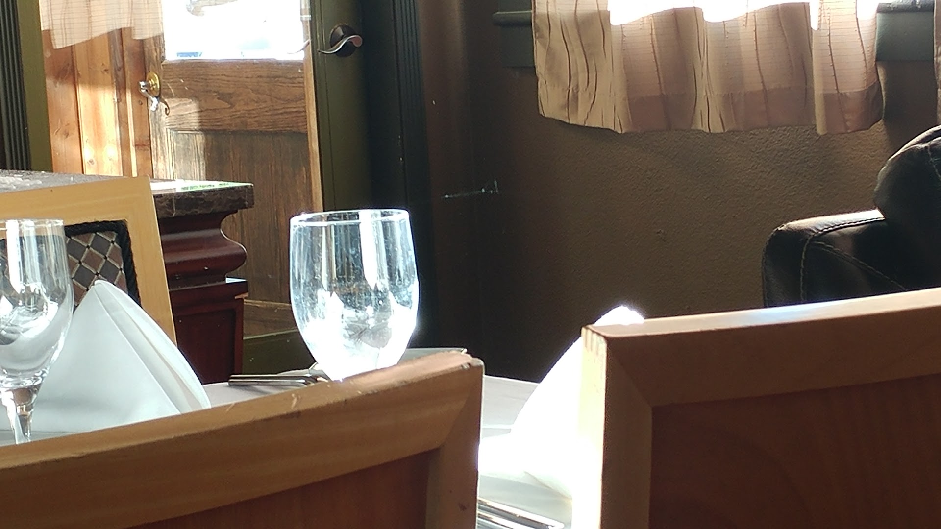 There was no sign in front of the restaurant whatsoever and the storefront is pretty dark - not much street lighting. If there was a sign we sure in the heck couldn't see it so we drove past the restaurant and had to turn around before we finally found it.