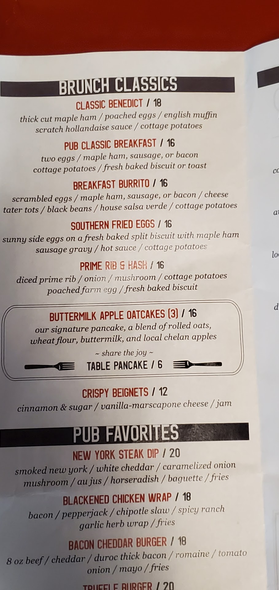 Read moreI agree with a previous reviewer: They have altered their menu to mimic an overpriced artsy restaurant. I paid over $81 for one person for prime rib, a dinner salad, one glass of their house wine and their chocolate desert. The menu was interesting. It along with the prices had my expectations high. The salad was completely ordinary and the only thing that was acceptable. The prime rib was cold and appeared old. First time I've been served brown gravy with it instead of au jus. It was completely dry and old, easily the worst prime rib I've ever had and I've been ordering it my entire life. The "smashed potatoes" and "wilted greens" served with it were highly unexceptional. The potatoes were small little potatoes lightly fried in some grease, that is it. Absolutely nothing showing the least amount of effort. The foccacia bread served with the meal was gross. It's what you can buy off the shelf at any grocery store. Given the price of the dessert, I expected it to be exceptional. It was a scoop of Italian ice cream over something crusty smothered in Hershey's chocolate syrup. It was ridiculous. It was not anything house made. Thinking back, this is the most I've paid for a meal in my life, and I've had some exceptional meals. Given the busyness of Chelan, I wouldn't expect anything to change soon. The place was packed. If you're tempted by the atmosphere and up going, I would order a burger and not set my expectations high. Do not drop a ton of money expecting a treat. Totally unbelievable. I want to make it clear, this is one of the worst meals I've had out if I had paid any price. It wasn't just awful...