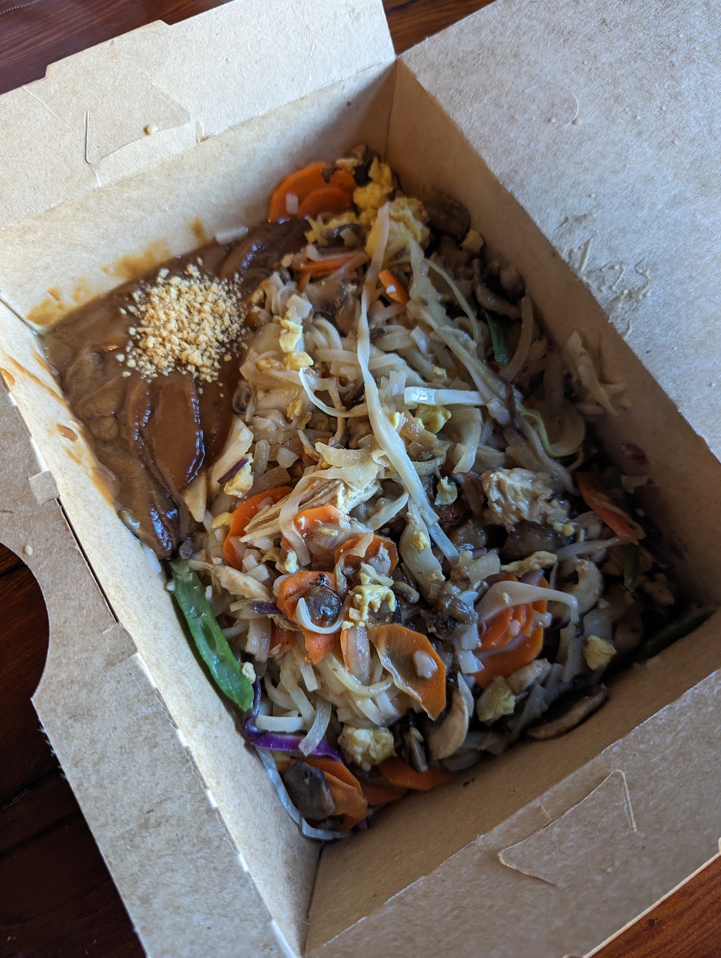 As for the food, I was a bit overwhelmed by the size of the portions. I ordered a small veggie base with curry, and I could hardly finish half the box before I was full. Also with the amount of extras you can add and price per extra, the cost can add up fast. The veggies felt a little dry to me, but I was offered extra peanut sauce for no extra cost.