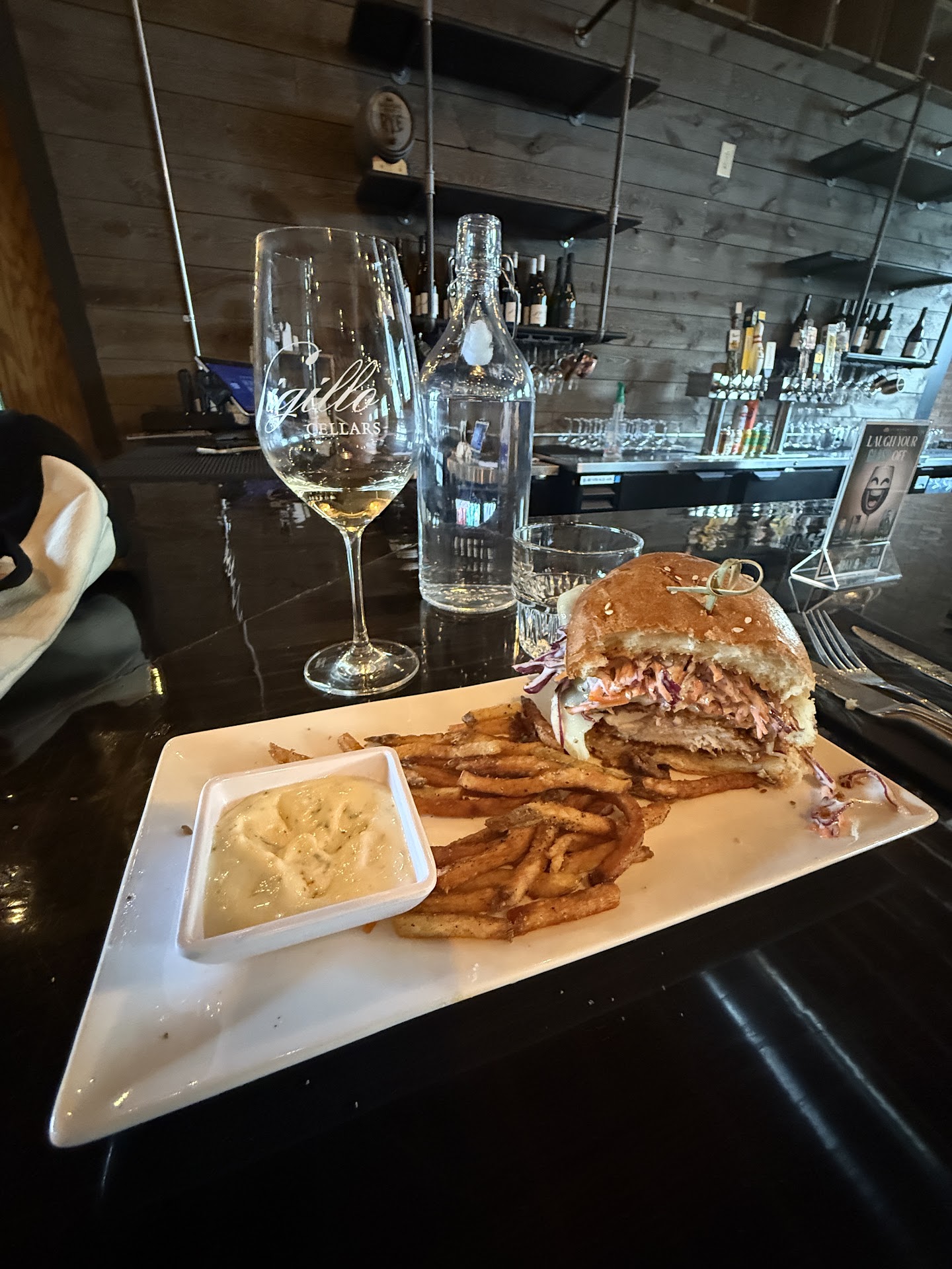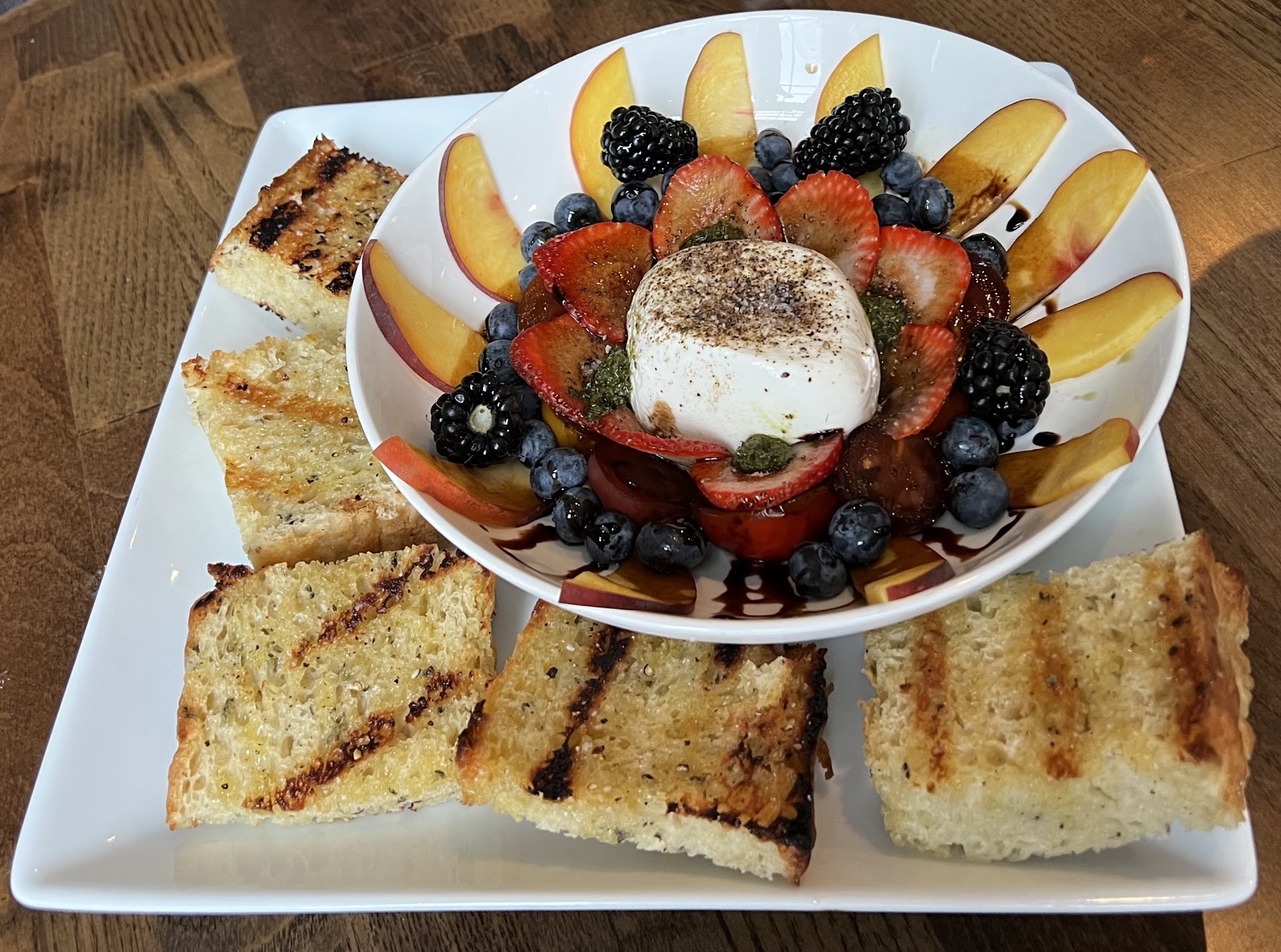 Every time I drive into Chelan I always say I want to go Sigillo Cellars and we finally went and I'm so happy we did! I must say, it was an exceptional experience. From the moment I stepped into their charming tasting room, I felt welcomed and at ease. The service at Sigillo Cellars is truly outstanding. The waiter was knowledgeable, friendly, and passionate about their wines. I wish I got his name but when we were leaving, he was busy helping others. He took the time to explain specific wines, share interesting stories, and make you feel like a valued guest. Whether you're a seasoned wine enthusiast or a novice, you'll appreciate their warm hospitality. The tasting room itself is in the beautifully restored Lakeside School Building on the south shore of Lake Chelan. You can choose to sit on the shaded deck, enjoy live music on the stage, or take in the stunning lake view from the rooftop deck. It's an idyllic setting for savoring great wine. We had a feast as well and shared several delicious plates between all of us. The Charcuterie Board features an assortment of cured meats, cheeses, seasonal fruits, nuts, and house-made crackers. The rotating house-cured charcuterie adds a unique touch. The Black Garlic Crostini is a must have, same as the Spring Burrata. These two dishes explode in your mouth! The black garlic crostini are served on house focaccia, topped with a flavorful black garlic spread, balsamic grape tomato, basil, and a hint of lemon zest. The Creamy burrata is accompanied by cherry tomato, strawberry, blueberry, balsamic reduction, and chive. A burst of flavors! The Satay Skewers were a group favorite! The skewers feature chicken thigh, red onion, and bell pepper, marinated in Thai curry, coconut milk, fish sauce, garlic, and cilantro. A flavorful treat! We decided to get a healthy choice which was the massaged kale salad. This salad features Lacinato kale, roasted chickpeas, red onion, strawberry, watermelon radish, almond, and Parmesan, all tossed in a delightful strawberry vinaigrette. We also got the Kids Board which was a very good size, and the kiddos loved every bite! Overall, Sigillo Cellars provides a delightful culinary experience with a variety of flavors, perfectly complemented by their wine selection. If you're in Chelan, don't miss out...