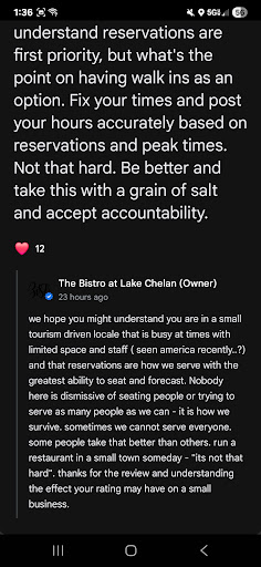 My friends and I came here to finish our bachelorette weekend before heading home. Parking was super easy, and the patio to walk in was so cute. We made reservations, which I would recommend as I witnessed a handful of tables being asked to come back later because they were already full up right when they opened. When we walked in, our waitress was waiting for us and had the cutest table already set for us. She was personable and sweet, and very helpful with our questions. The decor was so cute and elegant, and we felt like VIPs. Upon opening the menu, the prices were reasonable, and reading every dish made me salivate. I was craving an Eggs Benedict, but I don't eat seafood. I hate being that person to ask for any substitutions or changes, but I decided to ask. No crab, sub ham and avocado. Our server was happy to be accommodating, and said that she would ask the chef. She quickly came back to let me know that the chef was happy to make me their own version of a more traditional Eggs Benedict. The part that particularly impressed our group is that the chef came out to talk to me about my dish specifically to ensure that it was exactly what I wanted. When our food came out, the smell that filled the room was mouth-watering. I'm a firm believer that you feast with your eyes first, and boy did they! Everything was plated intentionally and looked incredible. The quality was clear as the flavor was perfect. I loved every bite as the avocado was fresh and velvety, the ham lightly crisped, the roll was fluffy yet toasted, and the egg was cooked to perfection. The only downside is that now I think I'm ruined for Eggs Benedict, and will have to drive 3.5 hours to get this perfect dish again. As a restauranteur and foodie, I was extremely impressed with The Bistro at Lake Chelan. Thank you for a beautiful dining experience that I look forward to...